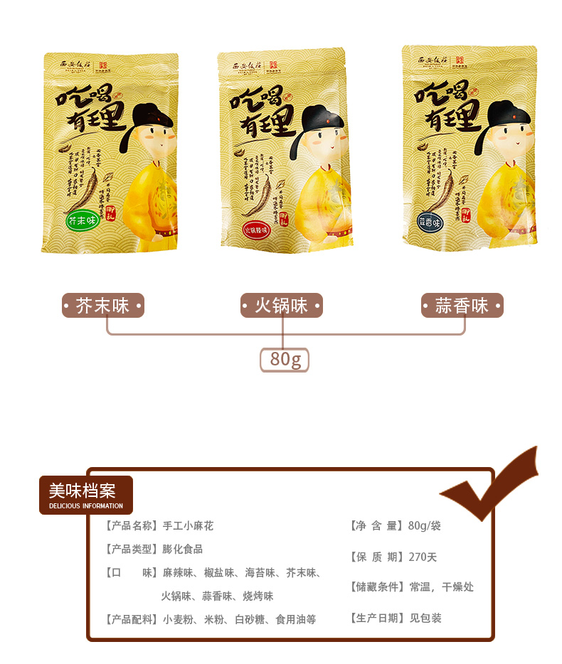 西安饭庄80g*3袋手工小麻花小吃咪休闲食品零食袋装单独怀旧包装