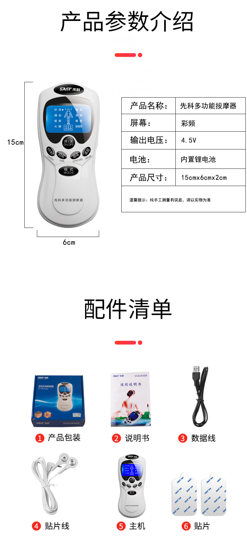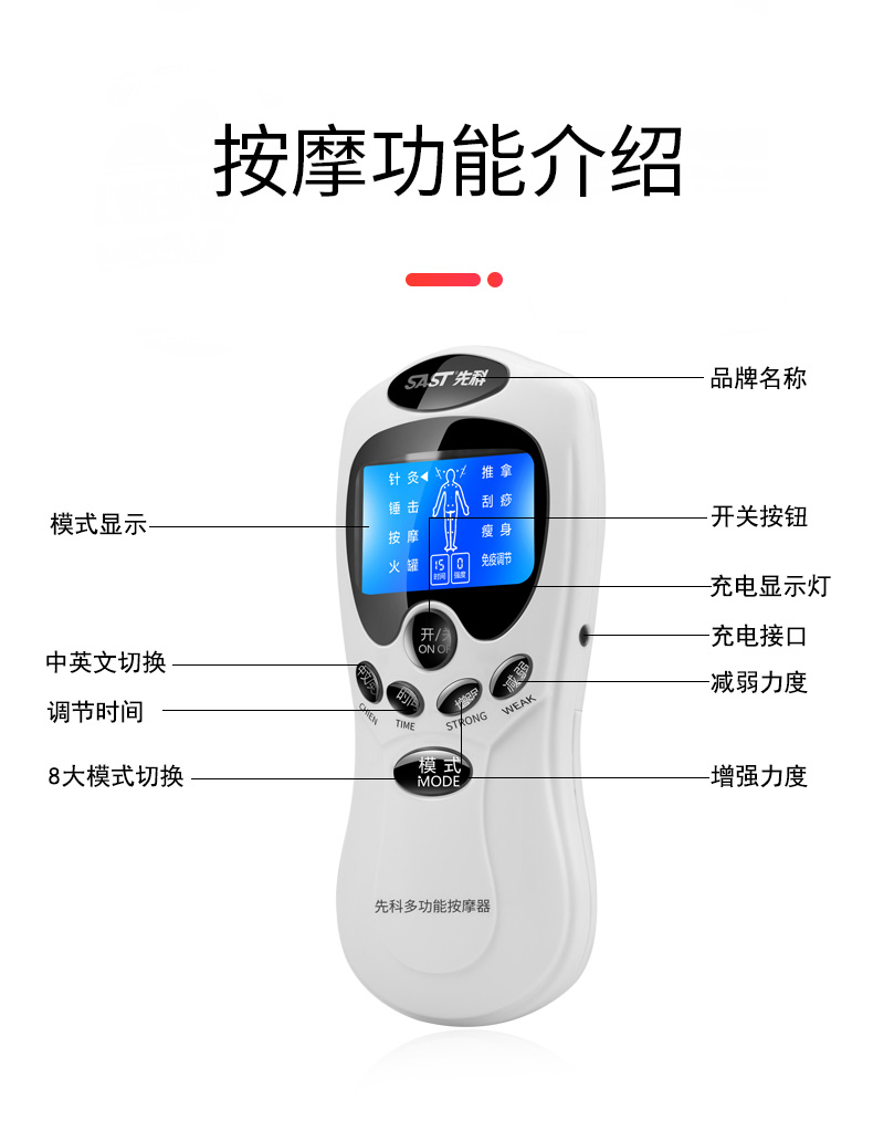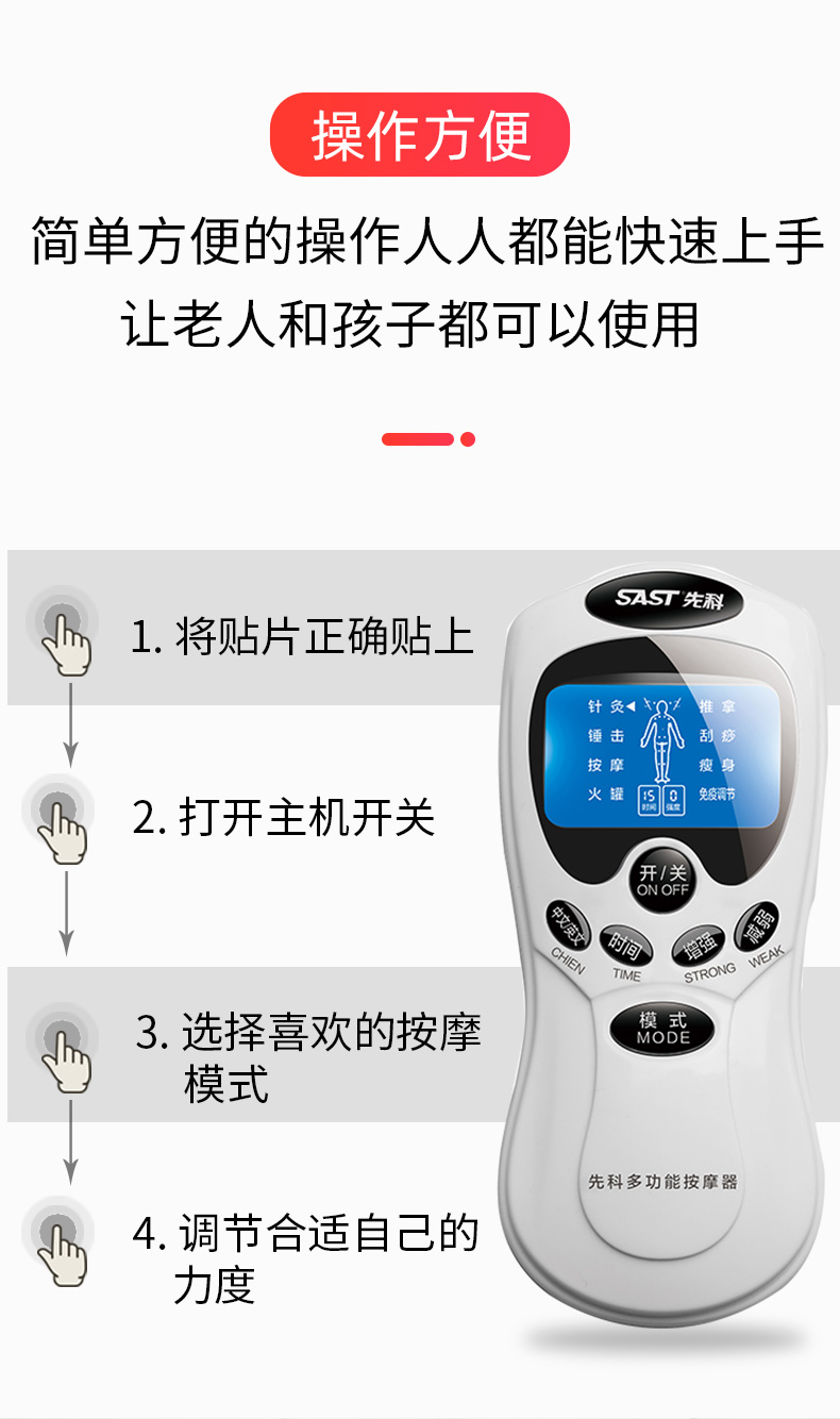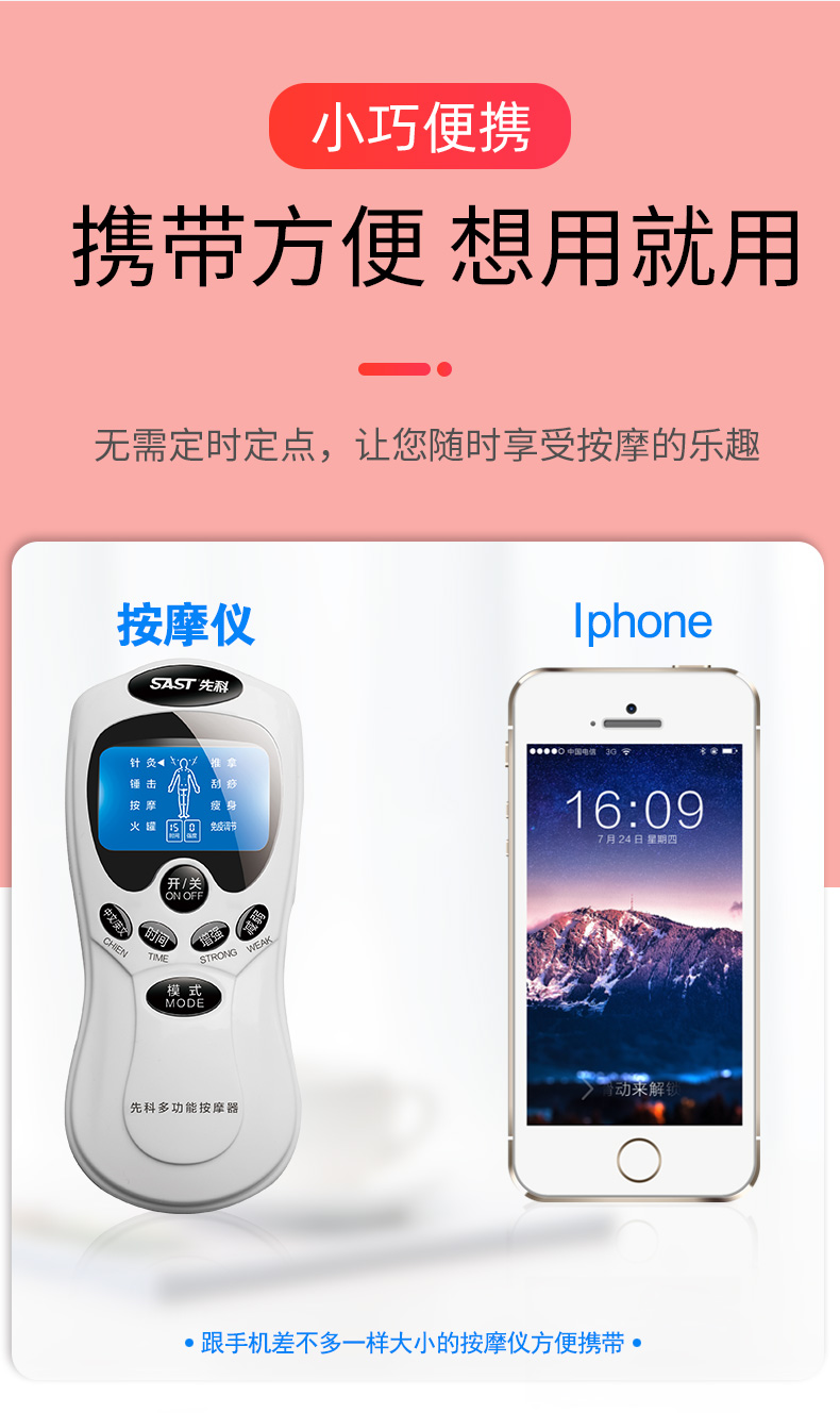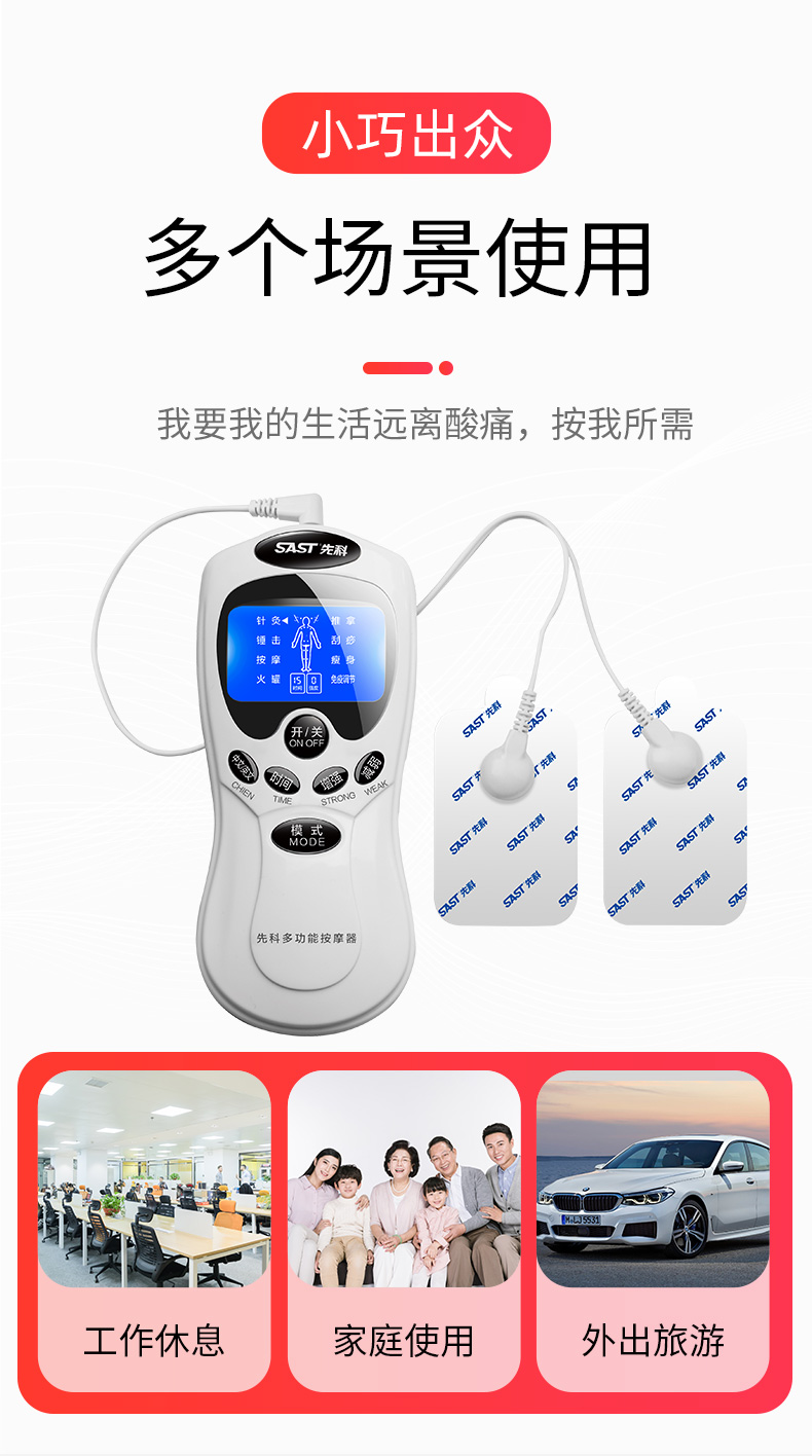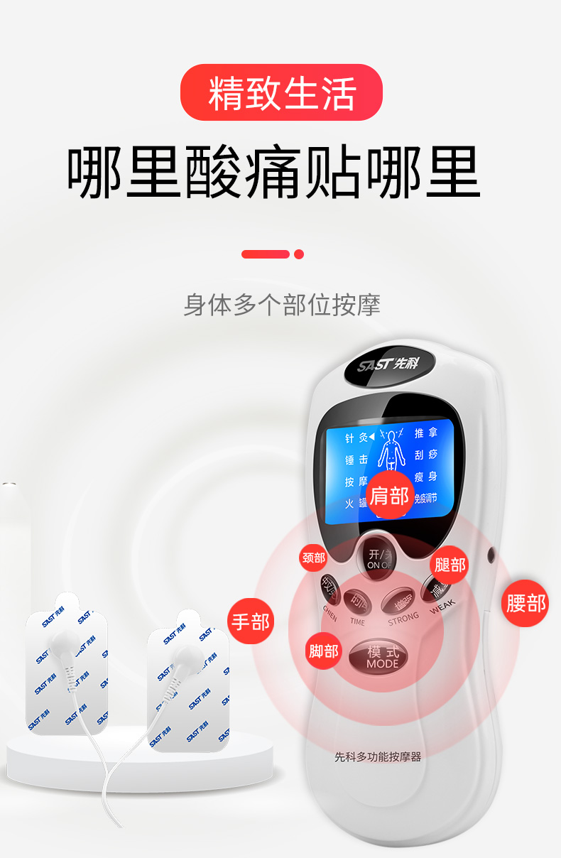 先科多功能迷你按摩器小型数码经络仪电疗穴位针灸脉冲理疗家用贴