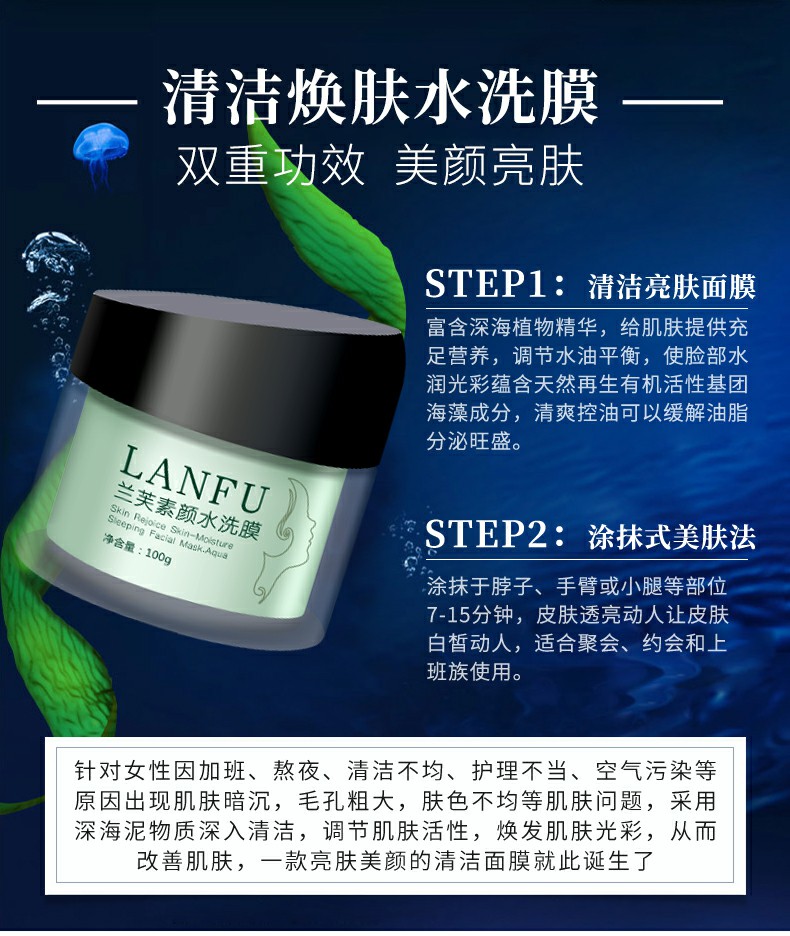 兰芙清洁面膜补水保湿海藻面膜清洁毛孔涂抹式深海泥膜正品面膜女