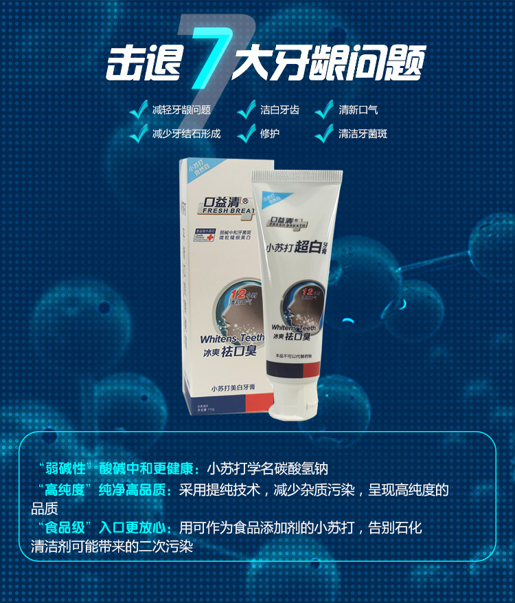 口益清清新口气牙膏改善口腔异味减轻去口臭牙膏小苏打洁齿牙膏