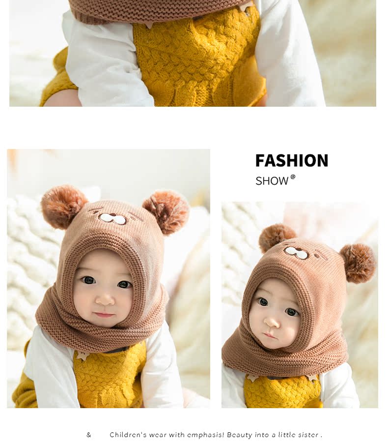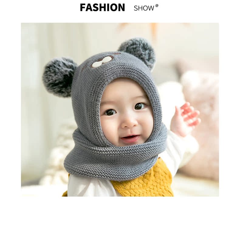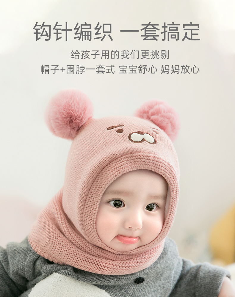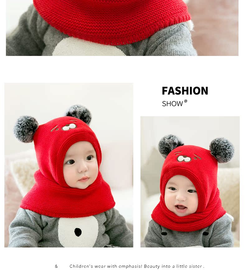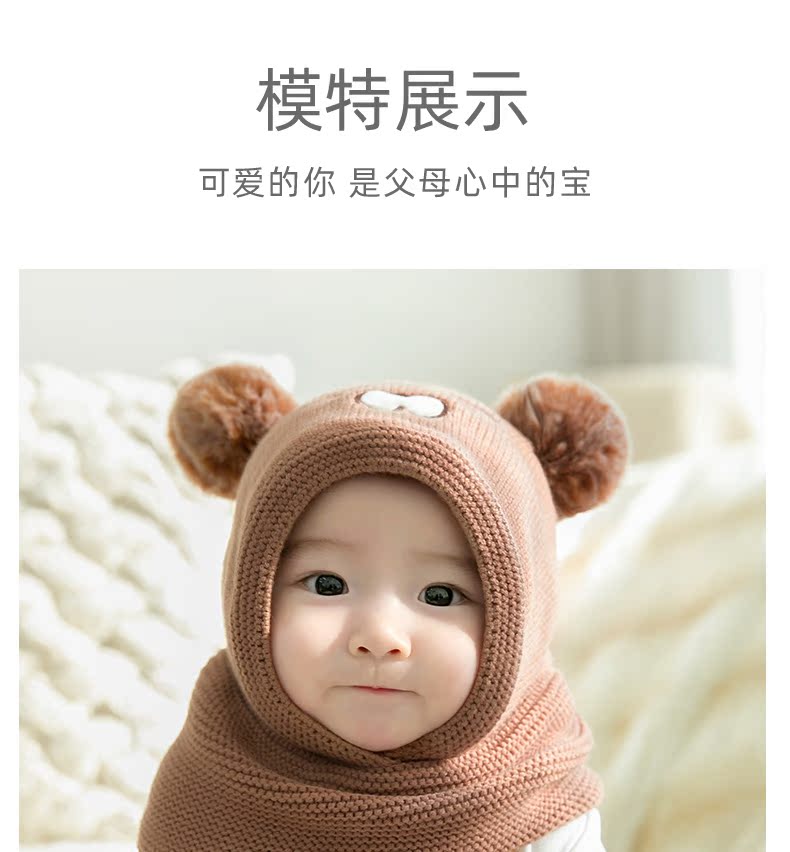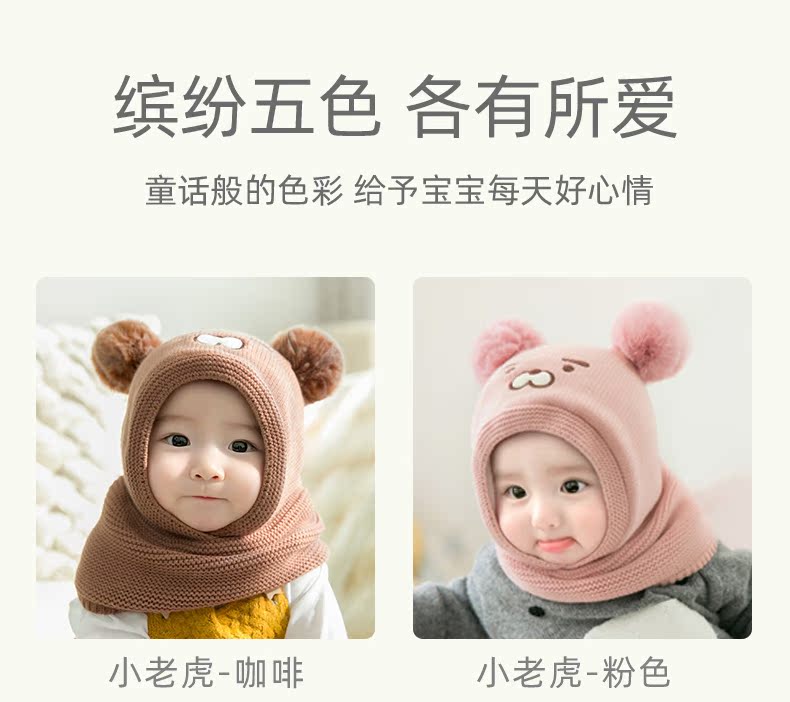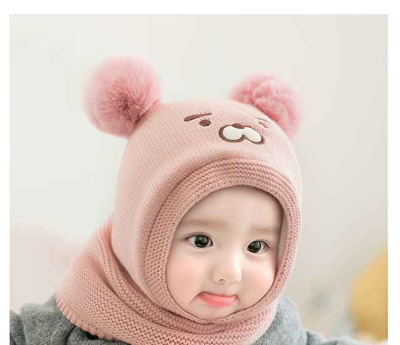 婴儿帽子秋冬季儿童帽子围巾一体男新生儿宝宝帽加绒女童可爱超萌
