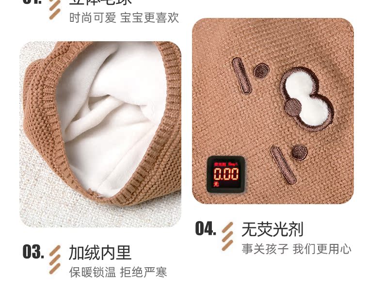【满两件9折,满3件8.5折】优质针织细毛线,手感很柔软,超级保暖!卡通造型,戴上显得宝宝更加机灵可爱,秒变萌宝哦!宝宝防风御寒必备!