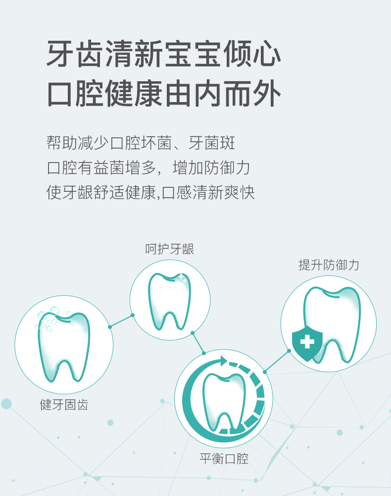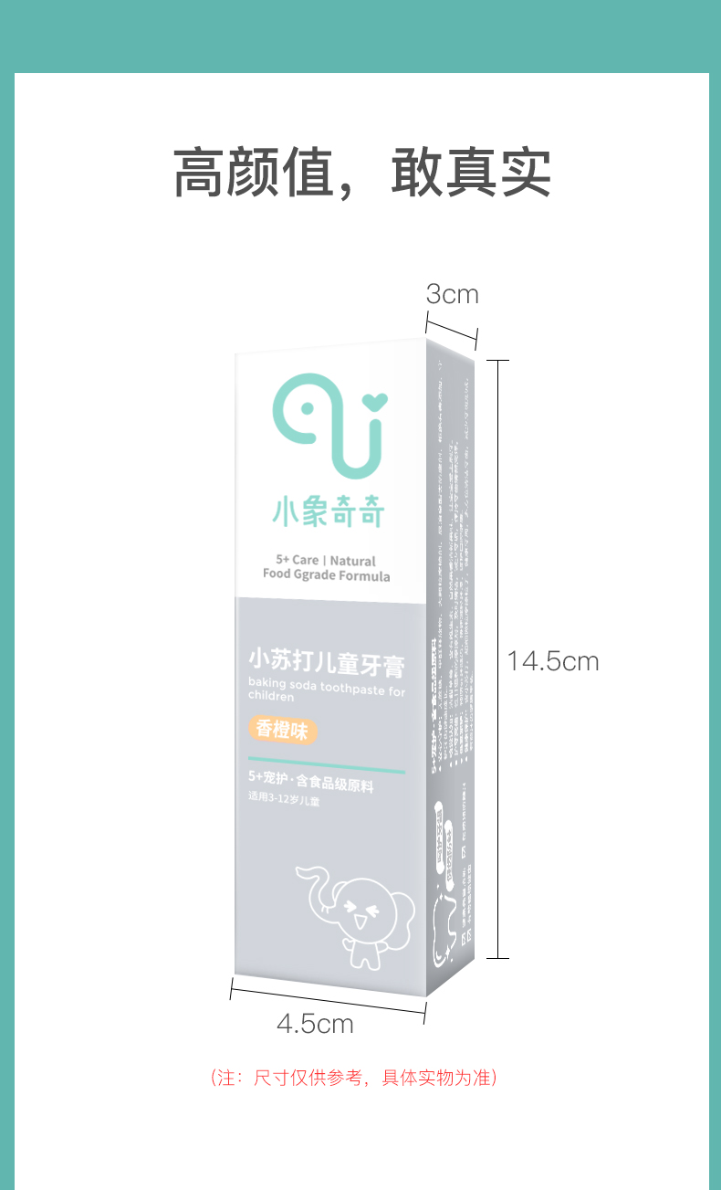 添加食品级小苏打,三重护牙洁齿!深层清洁,预防龋齿,固齿护牙,天然结晶化合物,温和护理宝宝口腔,甜甜果香,让宝宝爱上刷牙!