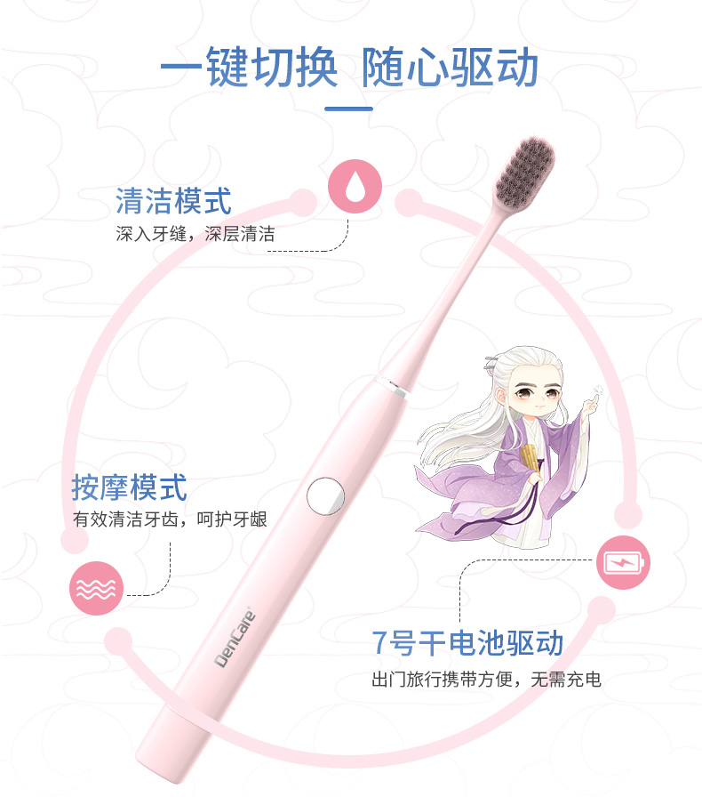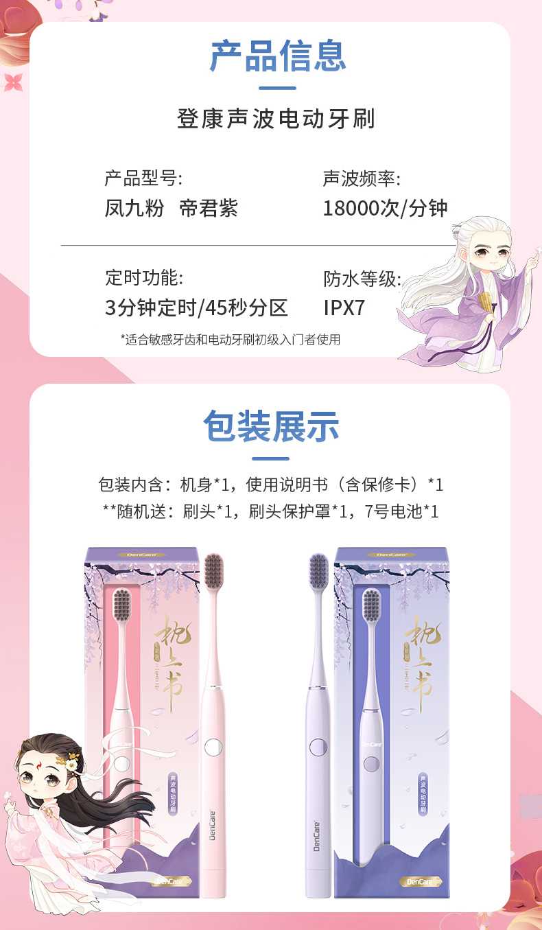 冷酸灵电视剧枕上书三生三世声波电动牙刷干电池款凤九粉帝君紫