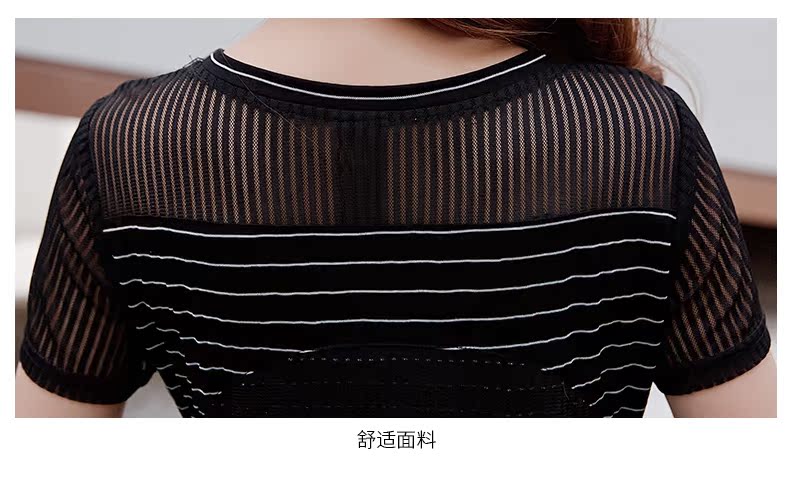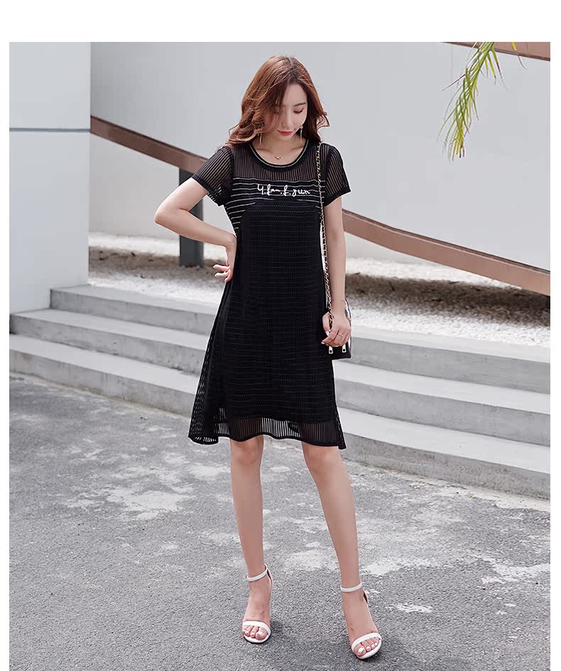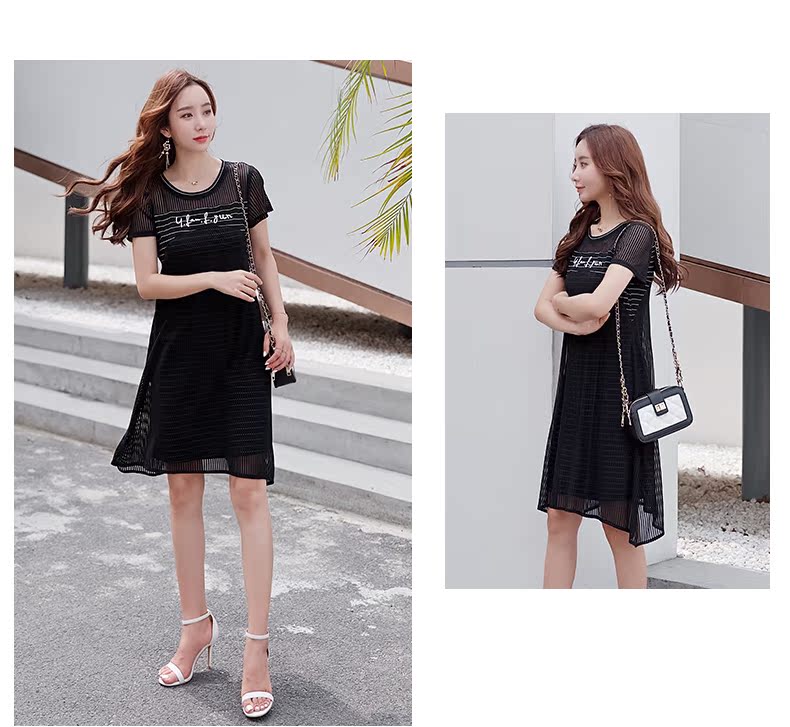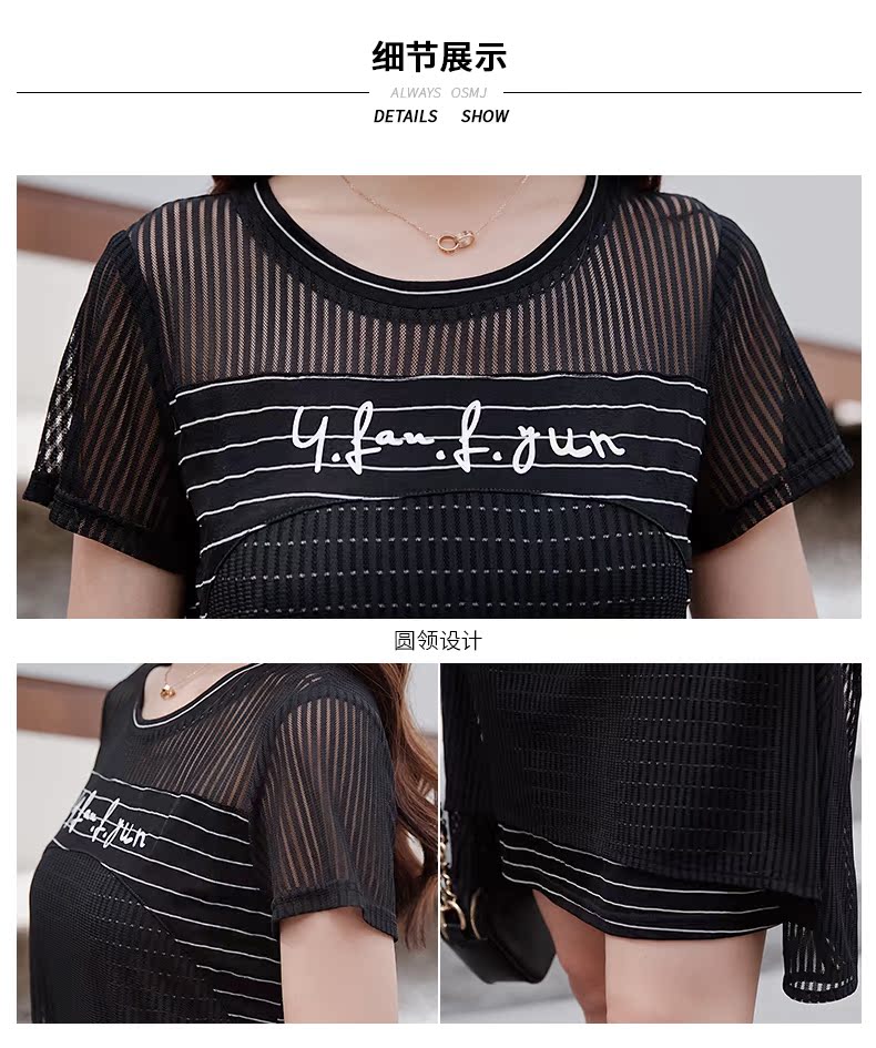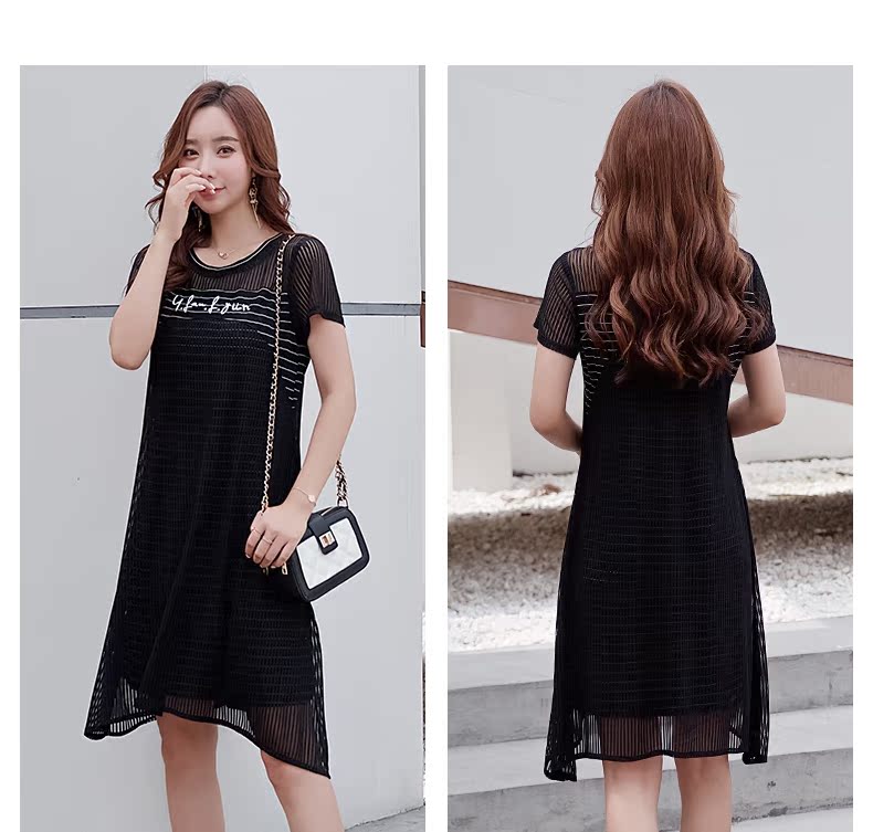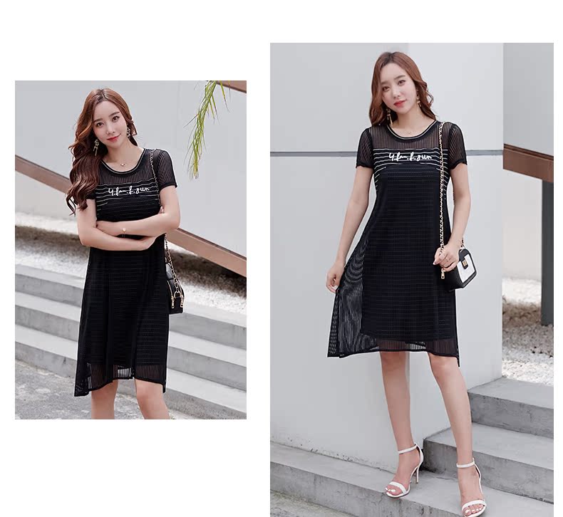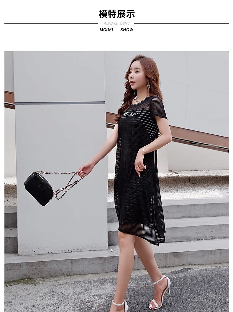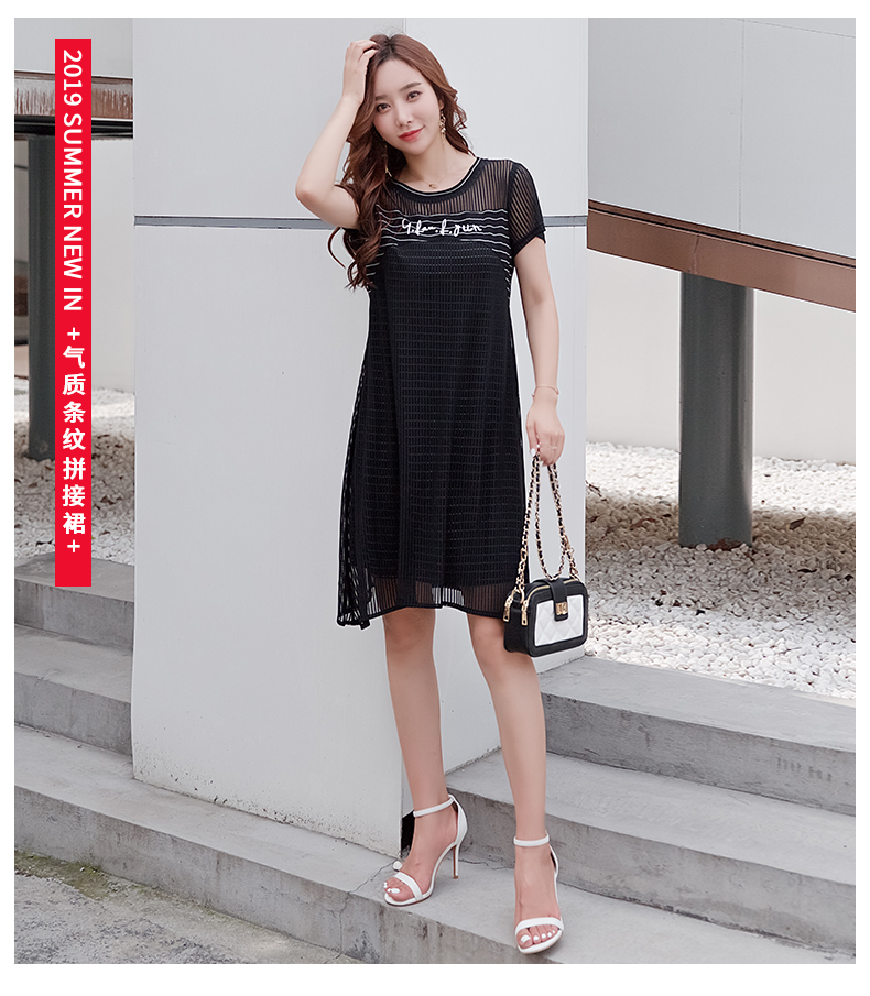 欧诗曼锦2019夏韩版条纹拼接宽松连衣裙女中长款遮肚子