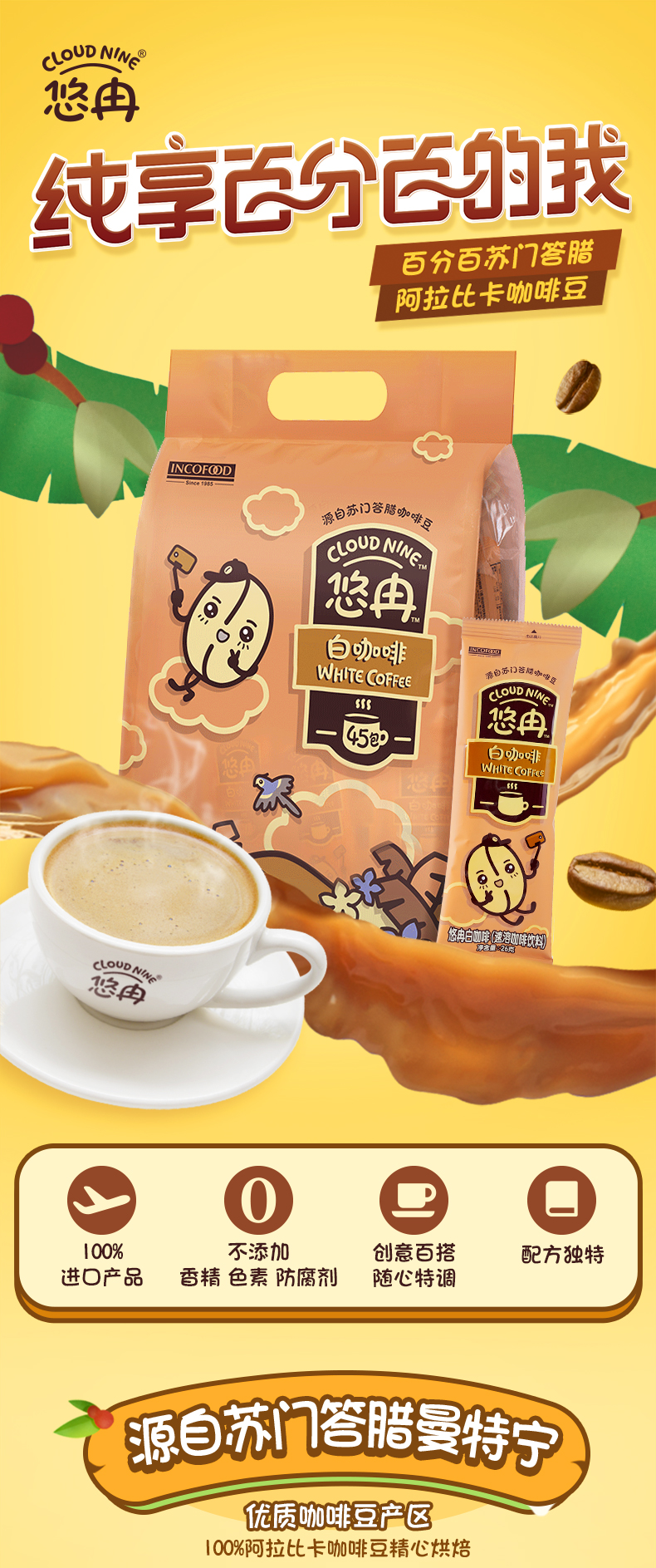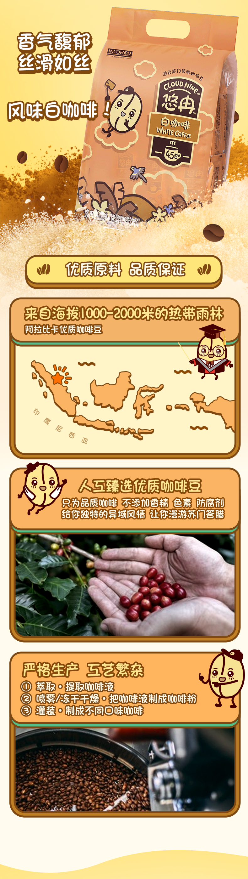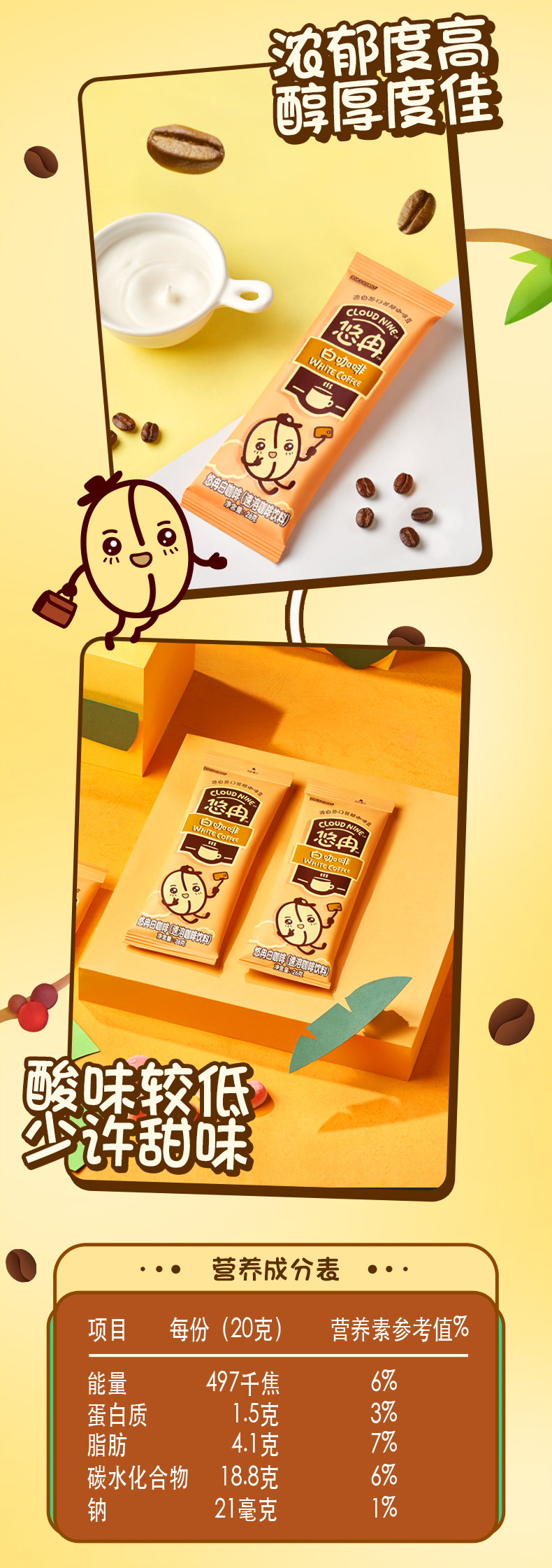 CLOUDNINE悠冉印尼原装进口白咖啡即溶提神冲饮饮品速溶20g*45条
