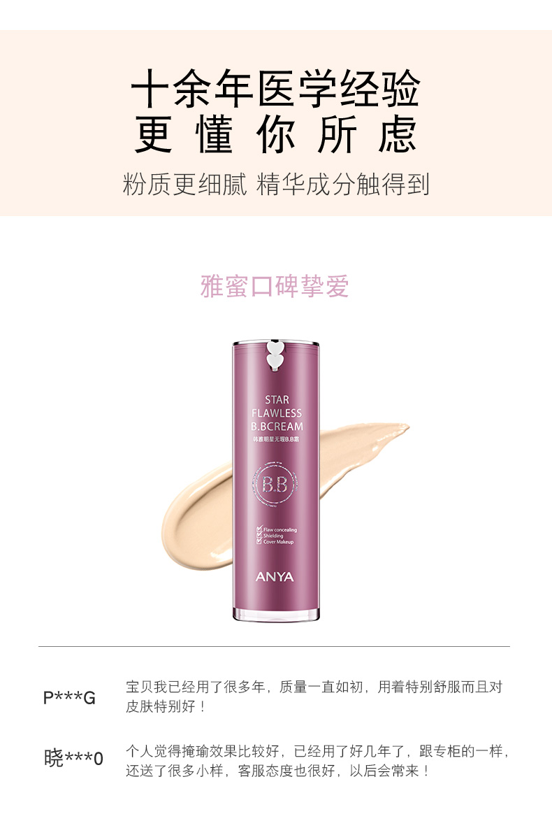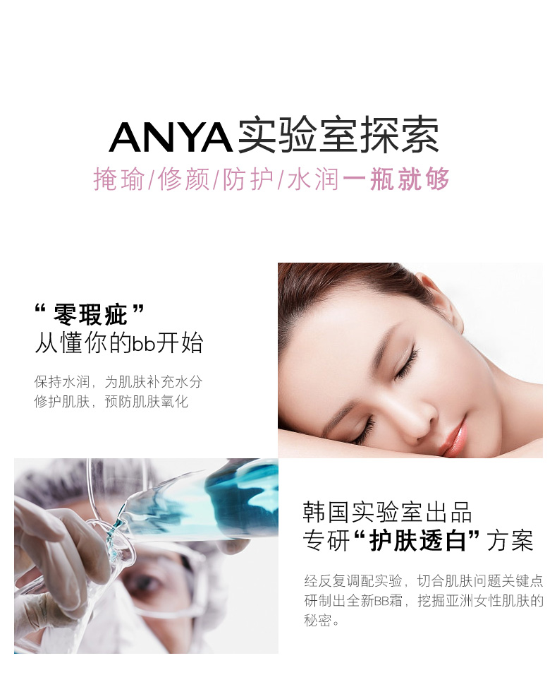 从懂你的bb霜开始,保持水润,为肌肤补充水分,修护肌肤,预防肌肤氧化。遮瑕亮肤,上妆无遗漏,一键美颜,亲肤弹力。好的底妆,一瓶就够!