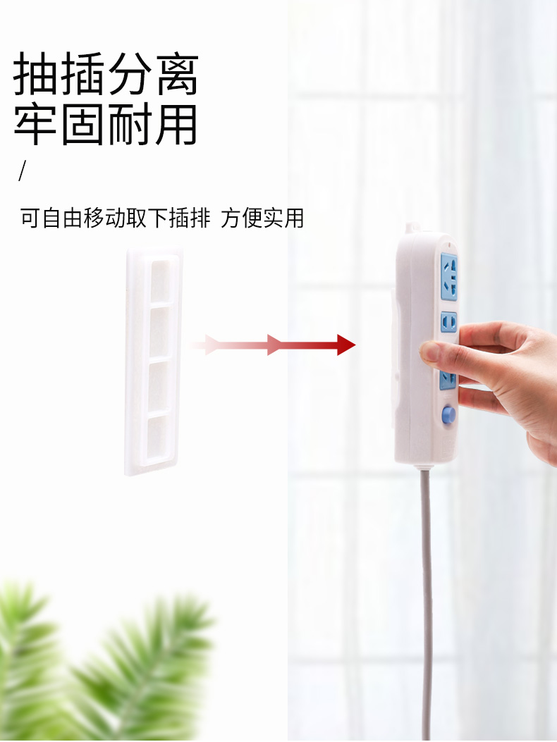 插排固定壁挂式电线收纳插座排插固定器墙上贴免打孔无痕宿舍神器