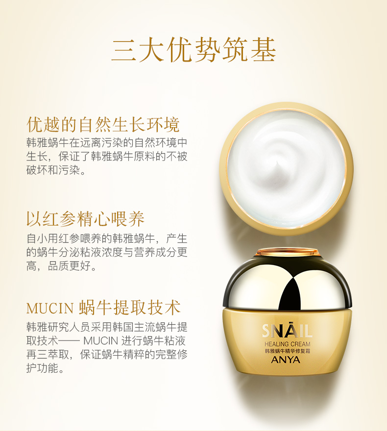 韩雅蜗牛精华修复霜韩国蜗牛补水保湿滋润紧致面霜旗舰店官网正品