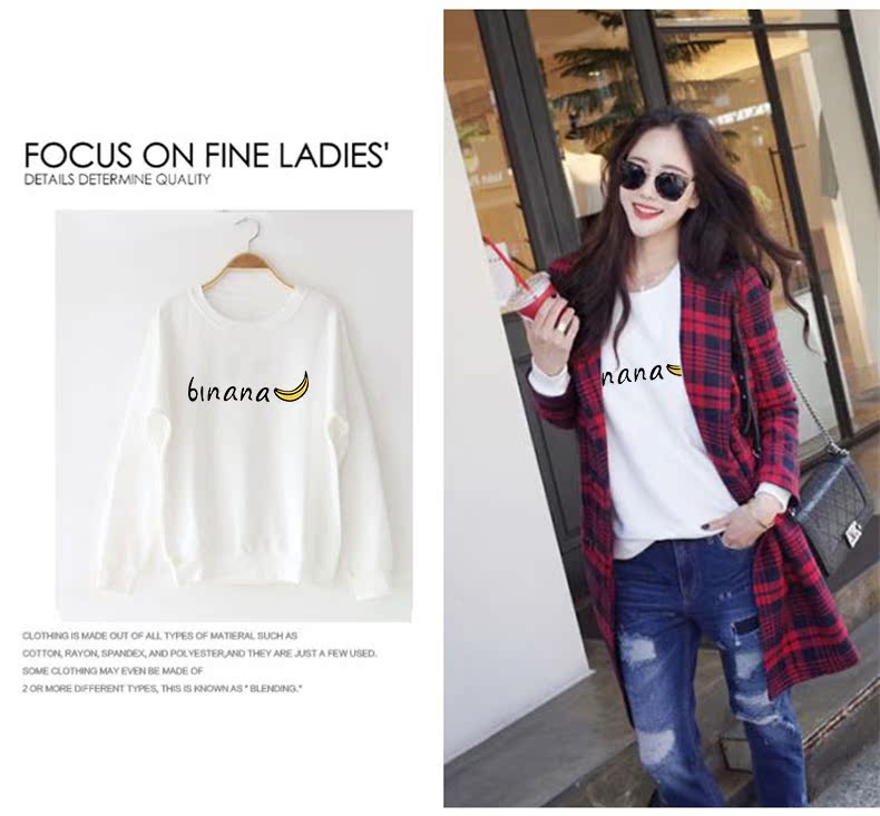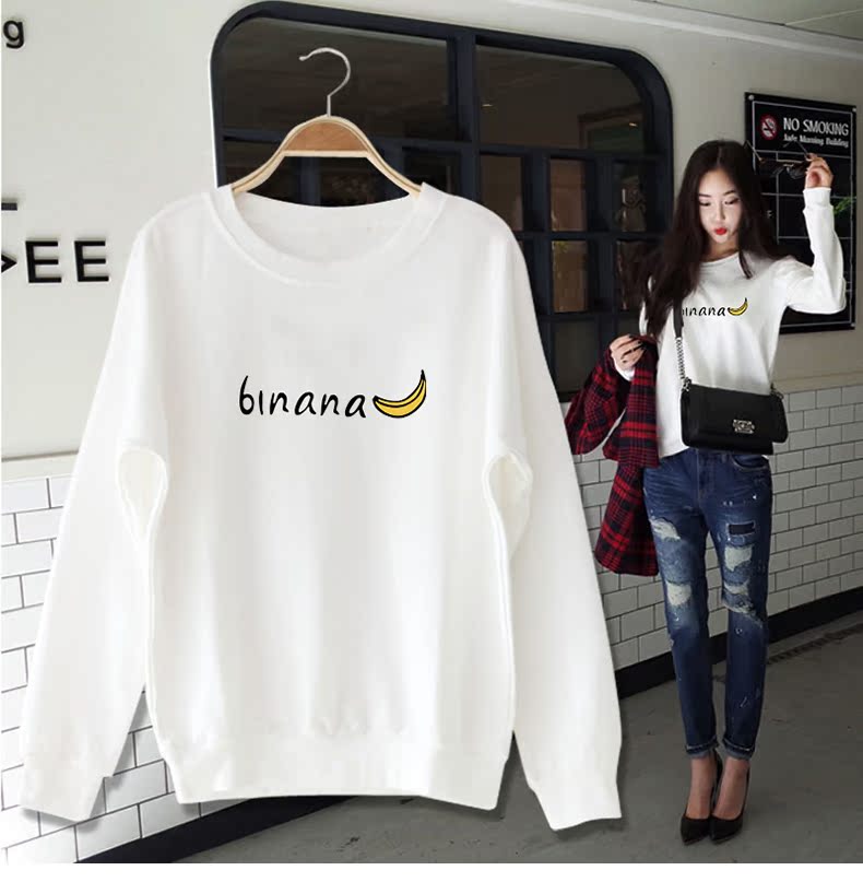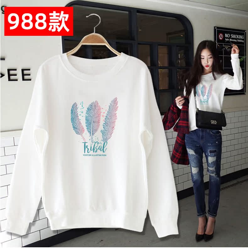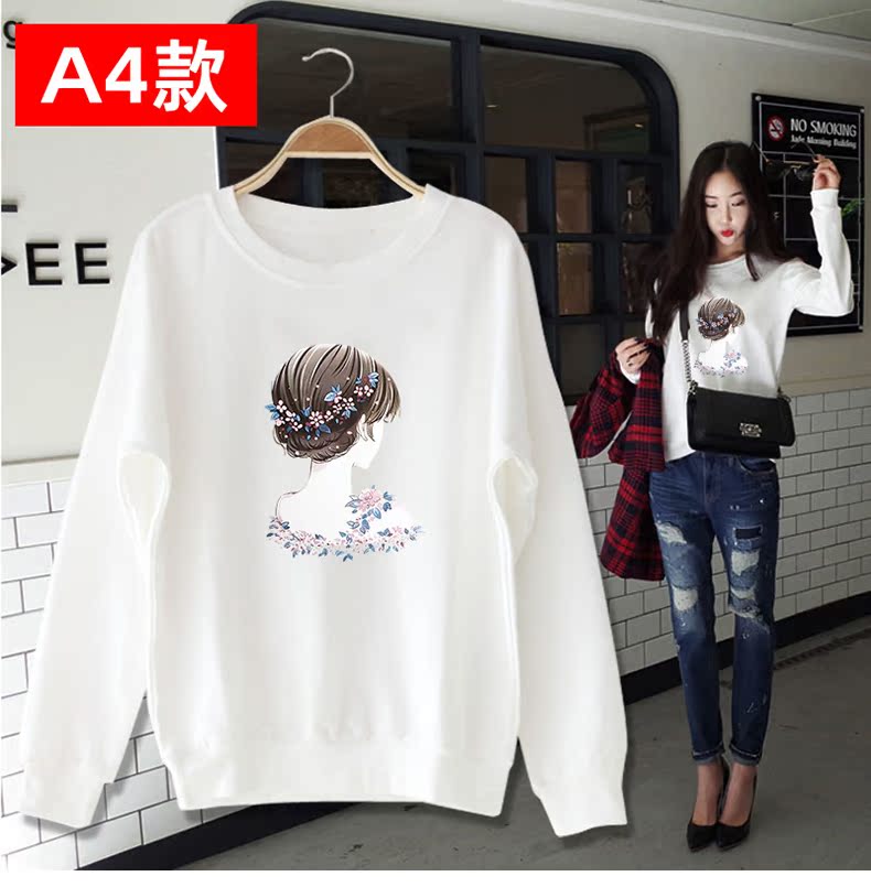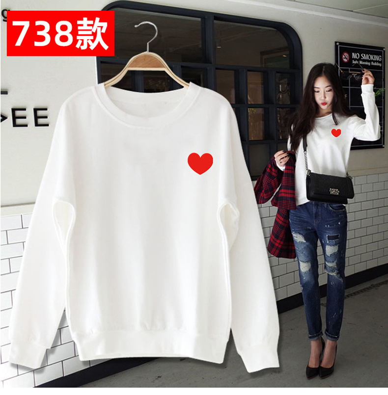 白色卫衣加厚加绒女圆领2019秋冬新款cec慵懒风套头宽松ins上衣潮
