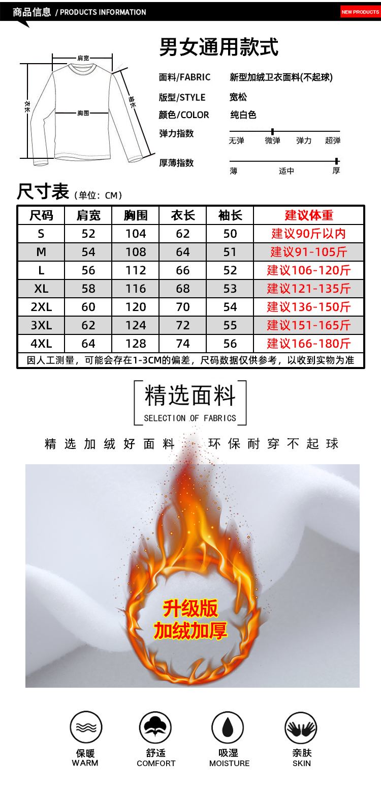面料特别好。很柔软。白色很显肤色,穿上很好看。特别满意。卫衣质量很不错,里面绒也不很不错而且非常便宜!下次还会购买!