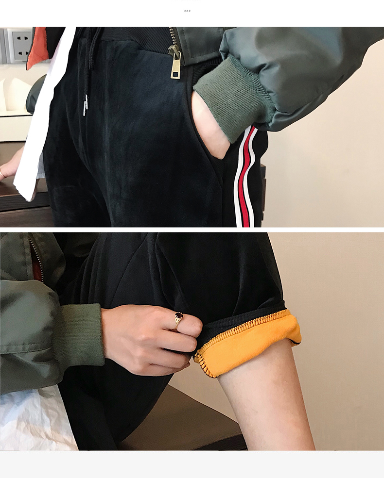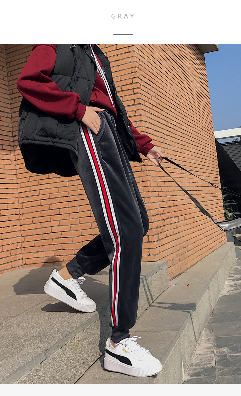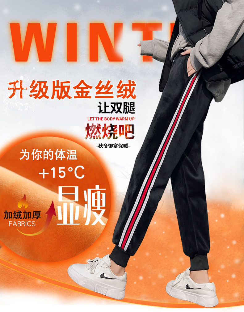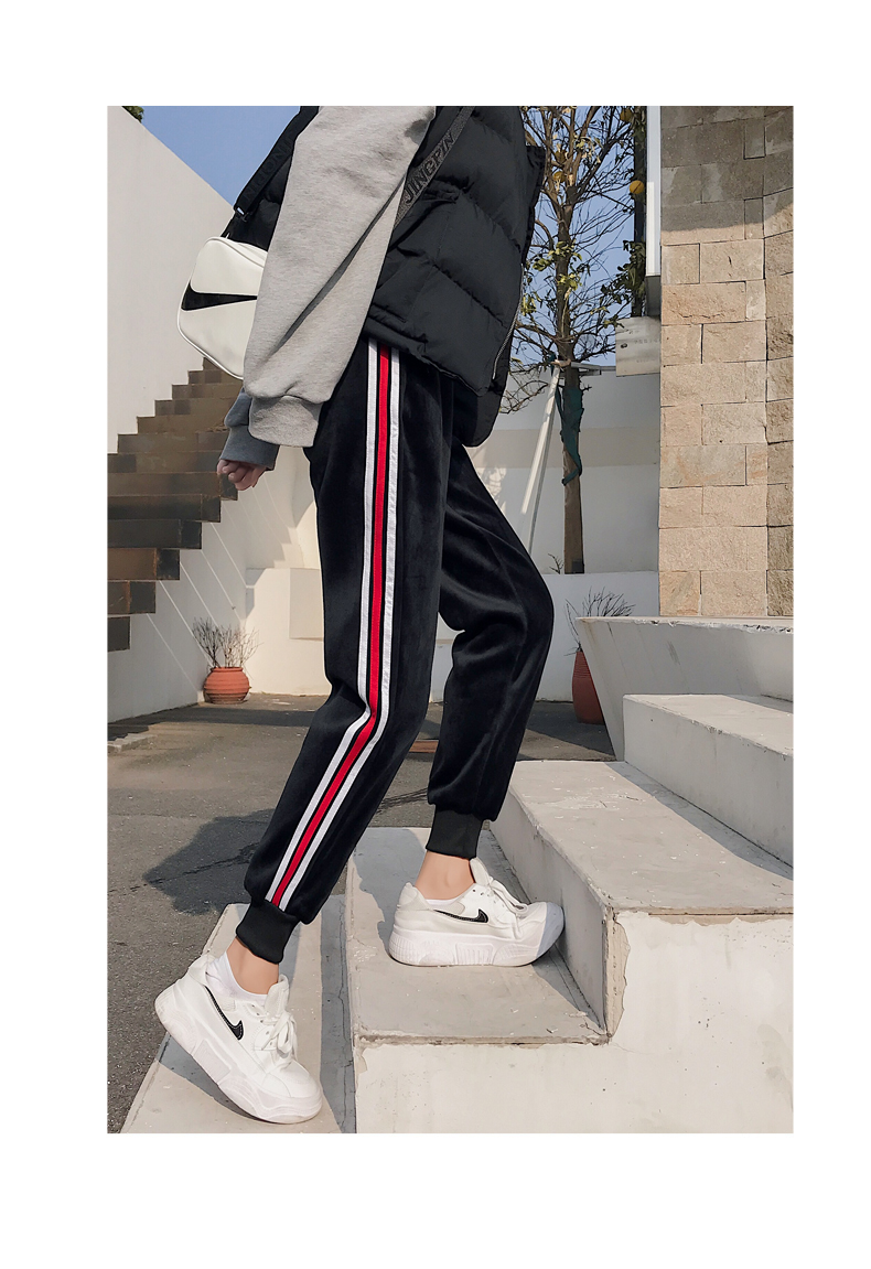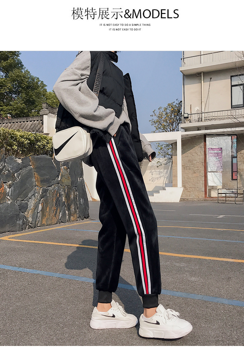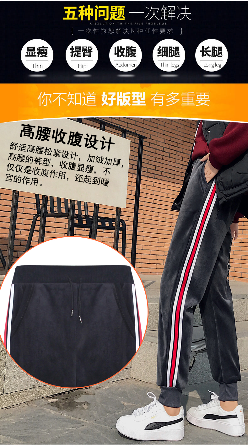 金丝绒阔腿裤女秋冬加厚2019新款大码宽松运动裤休闲萝卜哈伦裤子