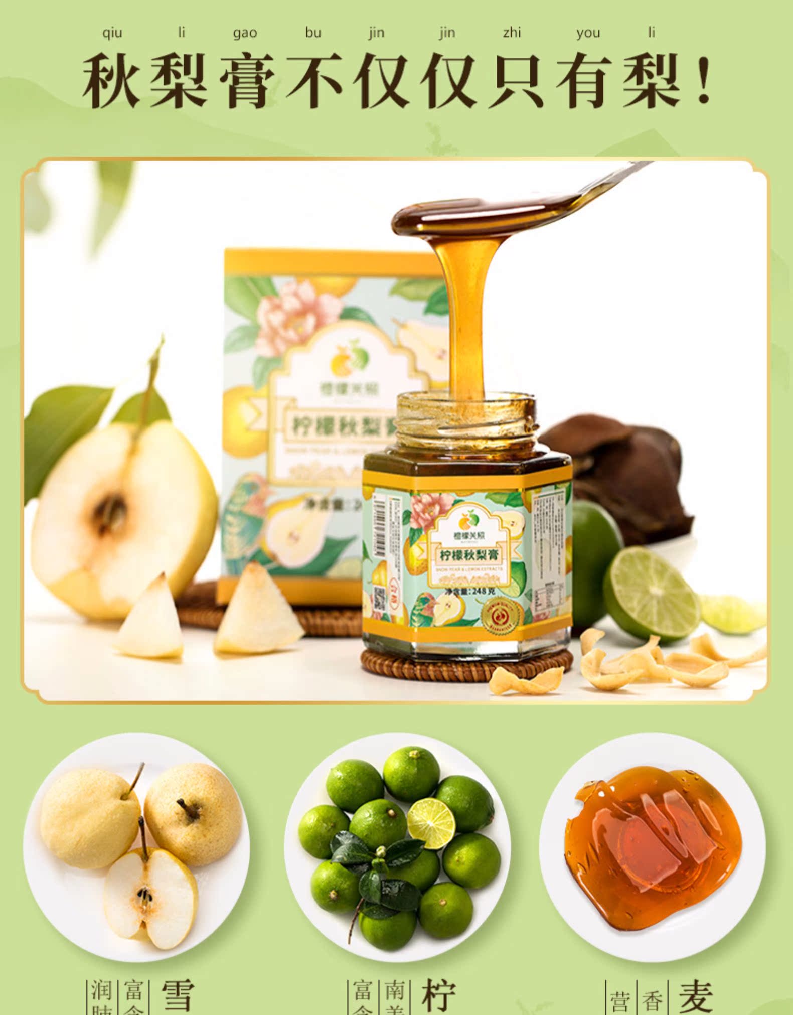 这个枇杷柠檬秋梨膏效果真的很好,喝完以后嗓子很清爽。味道适中,婴幼儿也可以食用。秋冬干燥易咳,冲点秋梨膏润润肺。