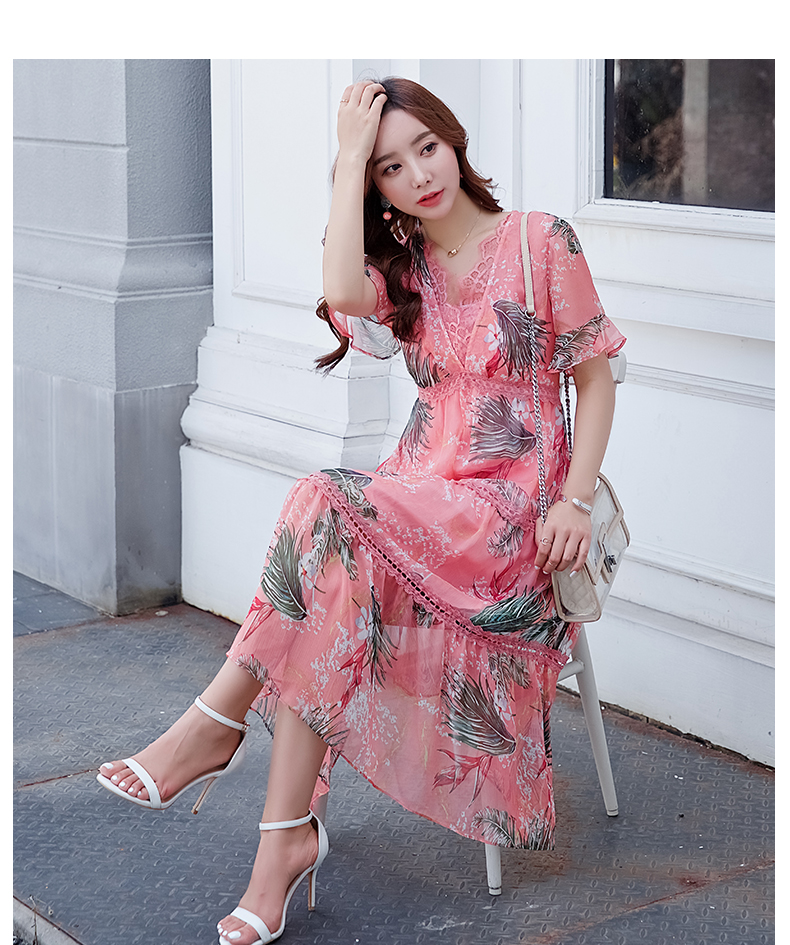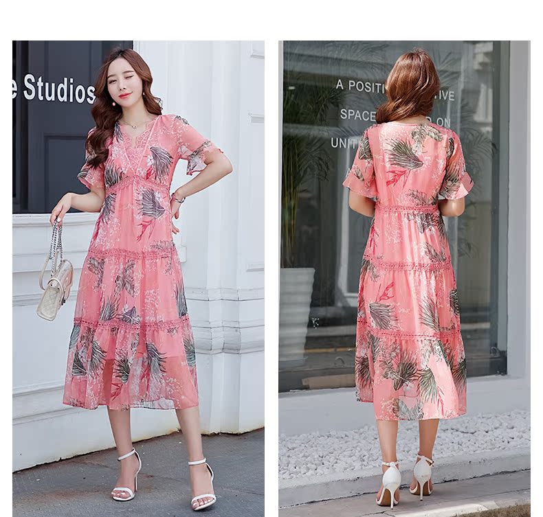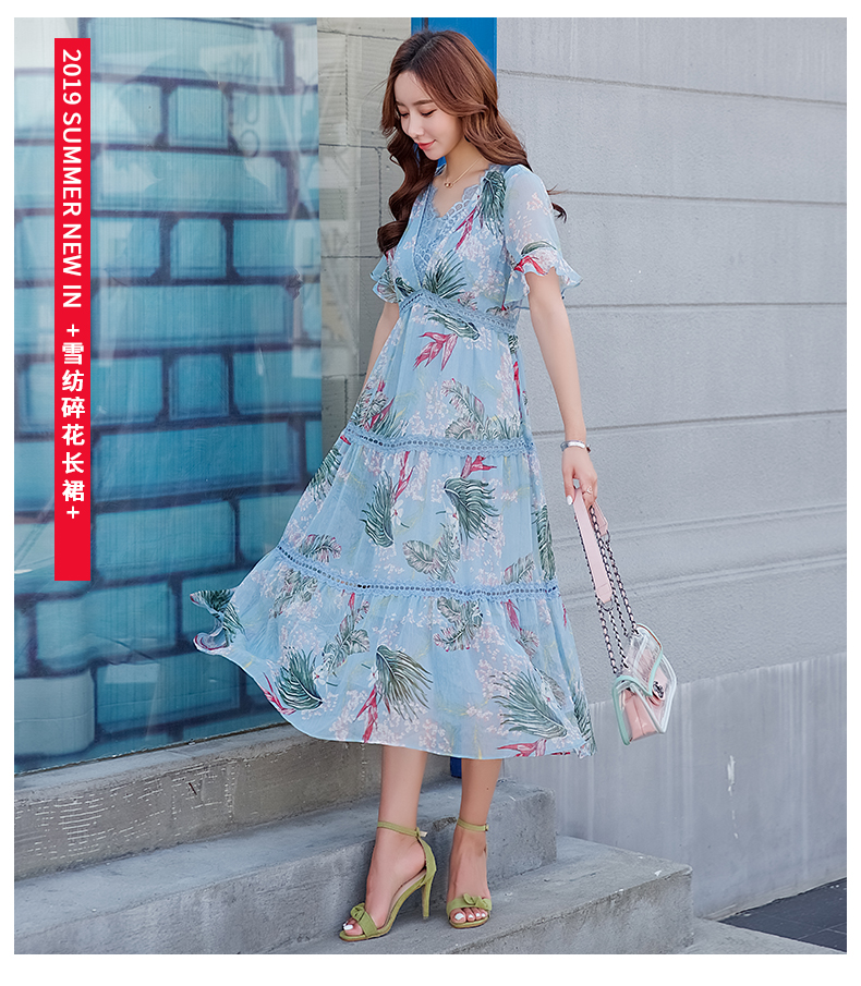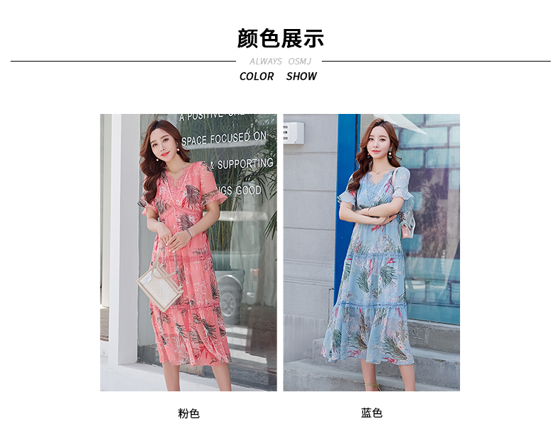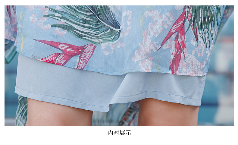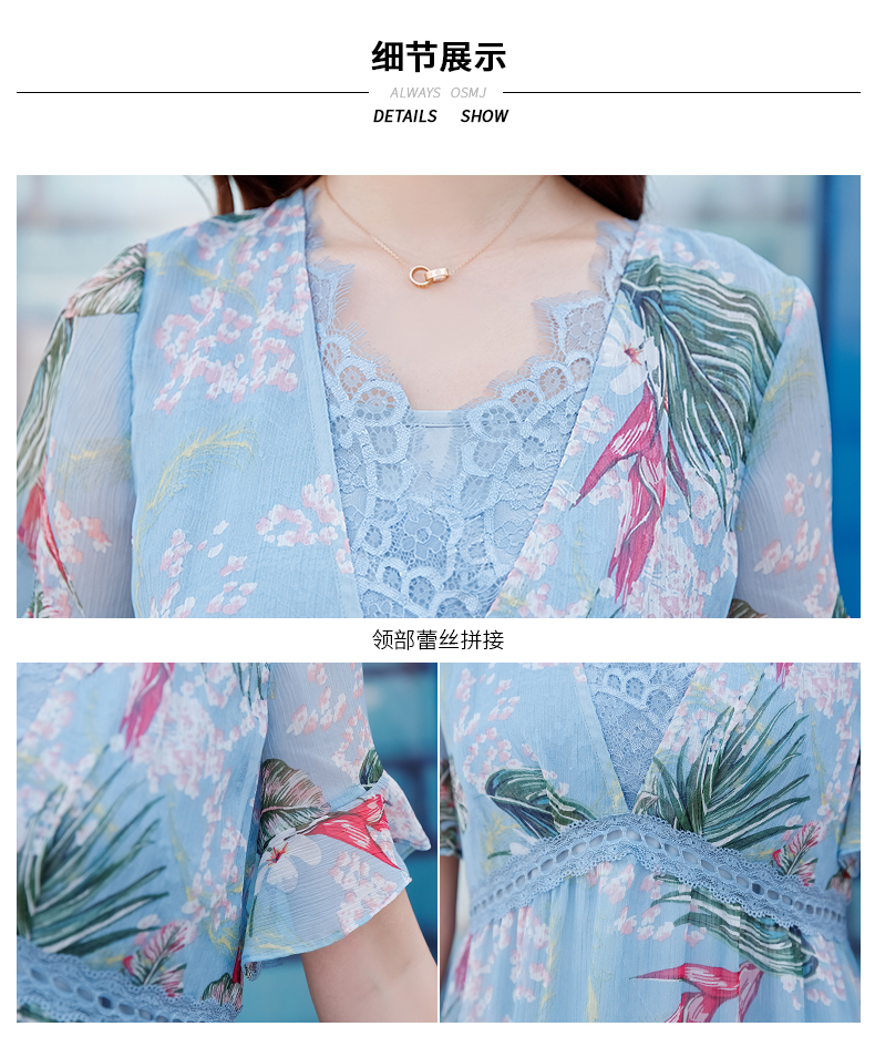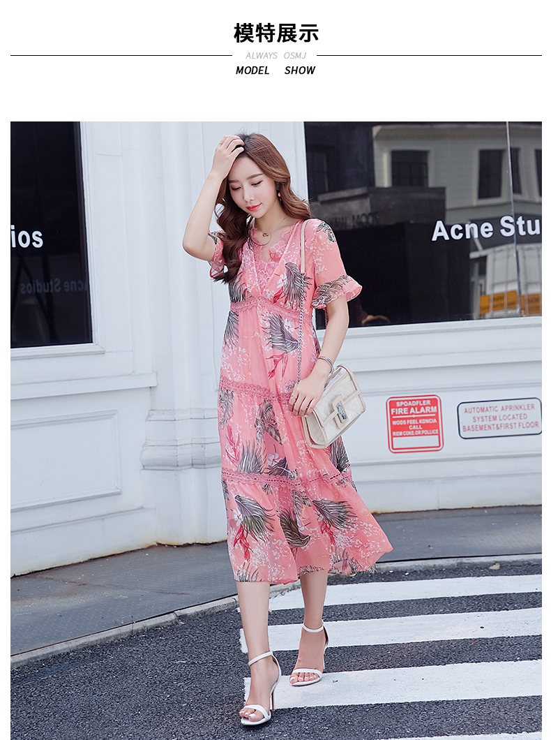 欧诗曼锦雪纺连衣裙两件套2019新款夏季碎花过膝长裙女