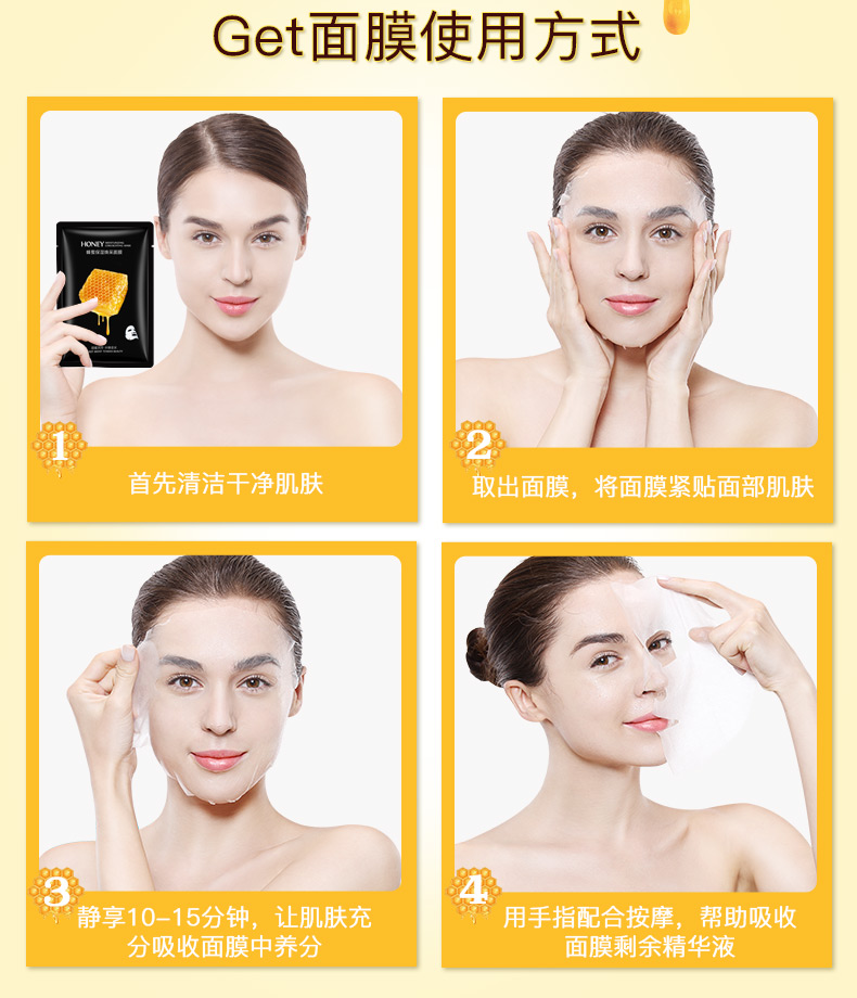 【第2件10元】蜂蜜面膜补水保湿提亮肤色男女学生玻尿酸收缩毛孔
