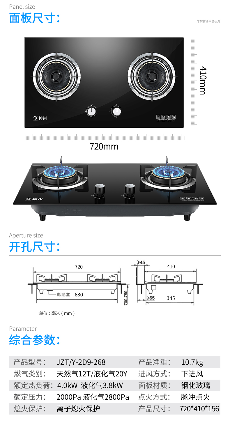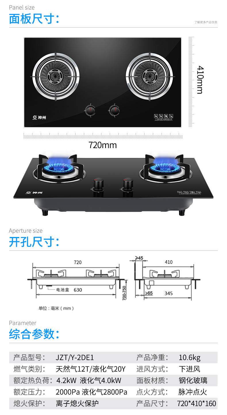 【神州厨电】35年经典品牌,脉冲电子点火,澳洲防爆钢化玻璃面板,加固面板,硬度大,耐压抗变形,易清洗。火猛节能省气,离子熄火保护,燃气不泄漏,无担忧品质【七天无理由】