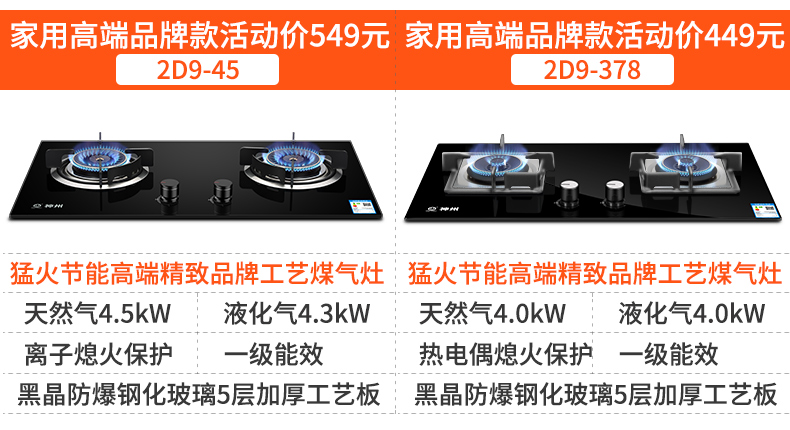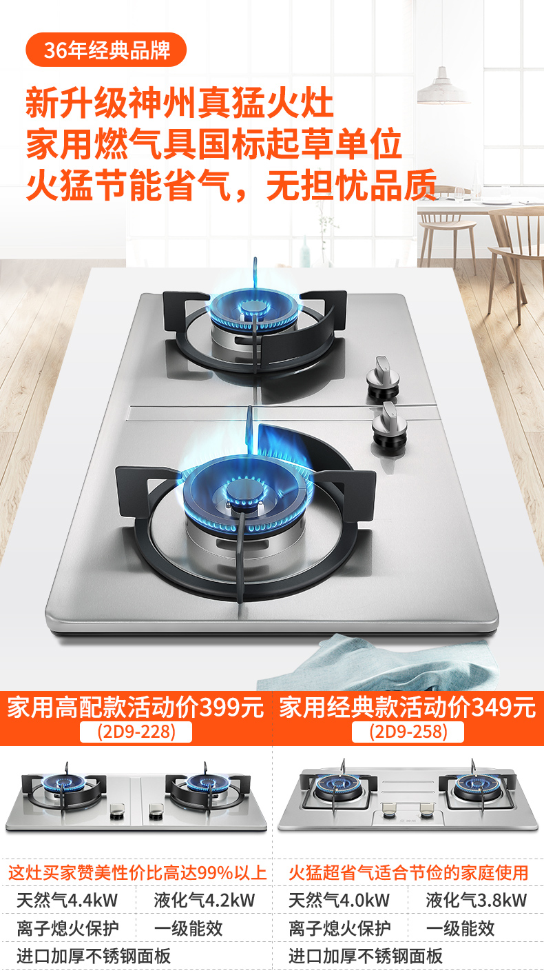 神州 D9228燃气灶双灶天然气液化气煤气炉家用台式嵌入式猛火节能