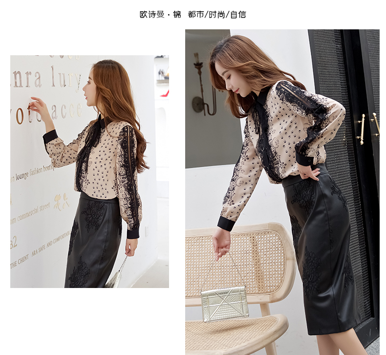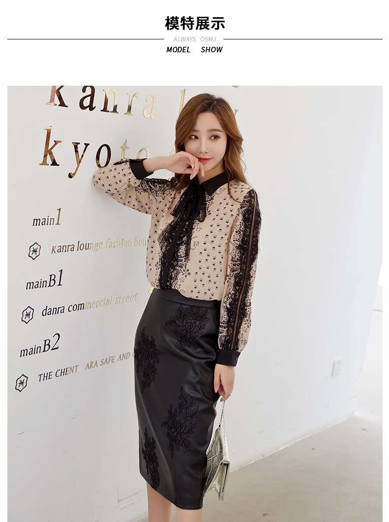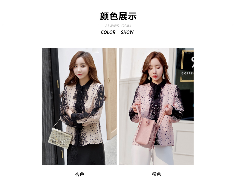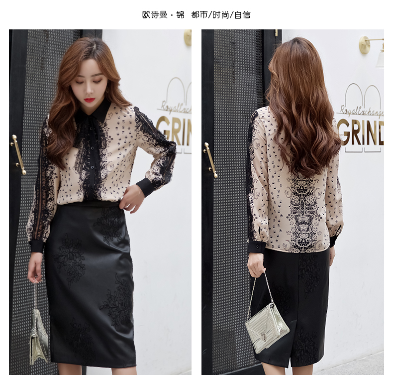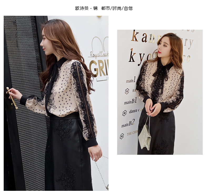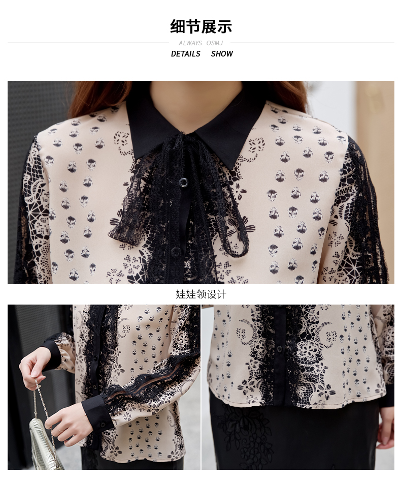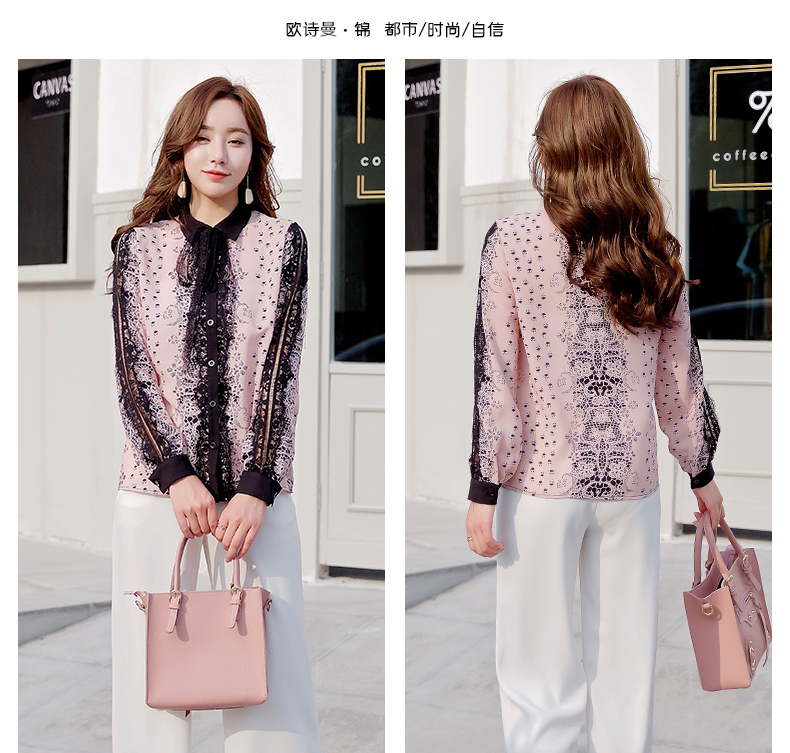 雪纺衫女2019春季新款女装衬衣印花蕾丝显瘦打底上衣潮