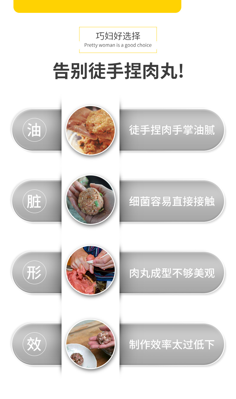 告别手捏额油腻腻,椭圆孔口,挤压肉丸更坚实,更美观!让你轻松做肉丸,还不赶紧备一个吧!