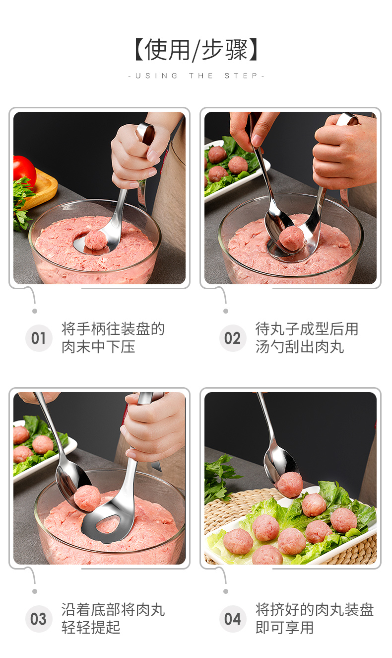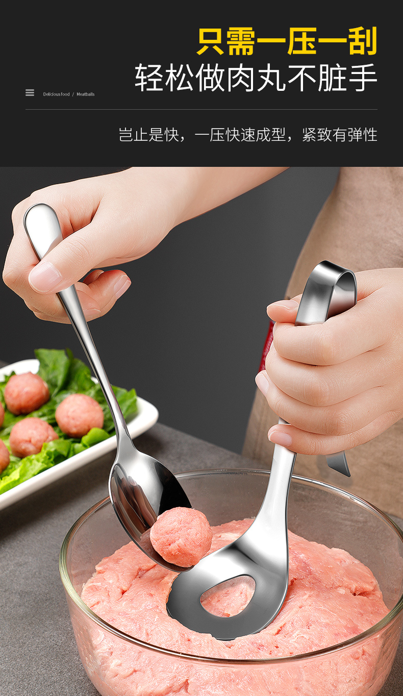 不锈钢压肉丸子制作器挤肉丸工具挖勺子炸做肉圆子的模具家用神器
