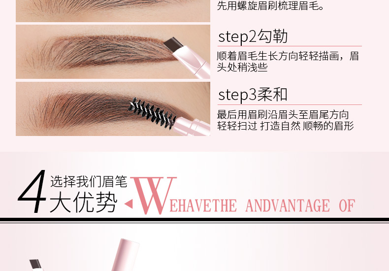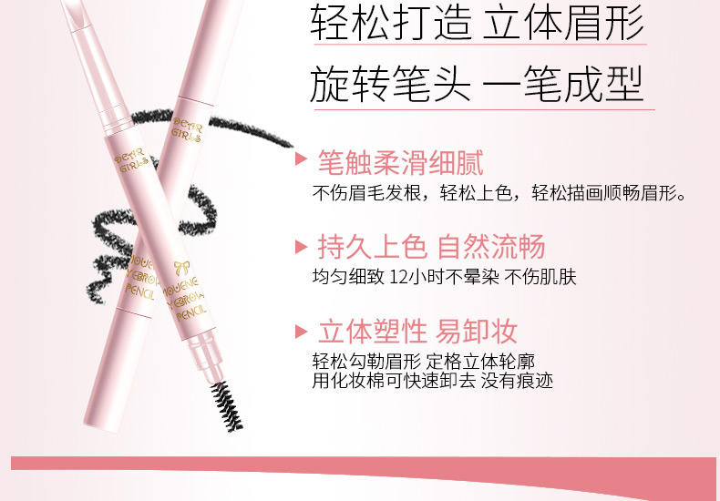 【第2件0元】天猫金妆奖年度明星单品,质量不输百元眉笔,双头旋转,轻松上色,防水防汗,立体塑形,持妆一整天,手残党也能画出精细的好眉形!线下专柜35元同步热销!
