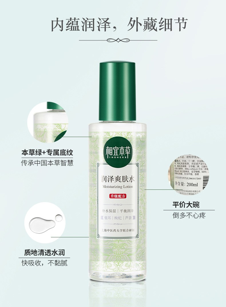 相宜本草润泽爽肤水200ml女保湿水补水保湿官方旗舰店正品化妆水