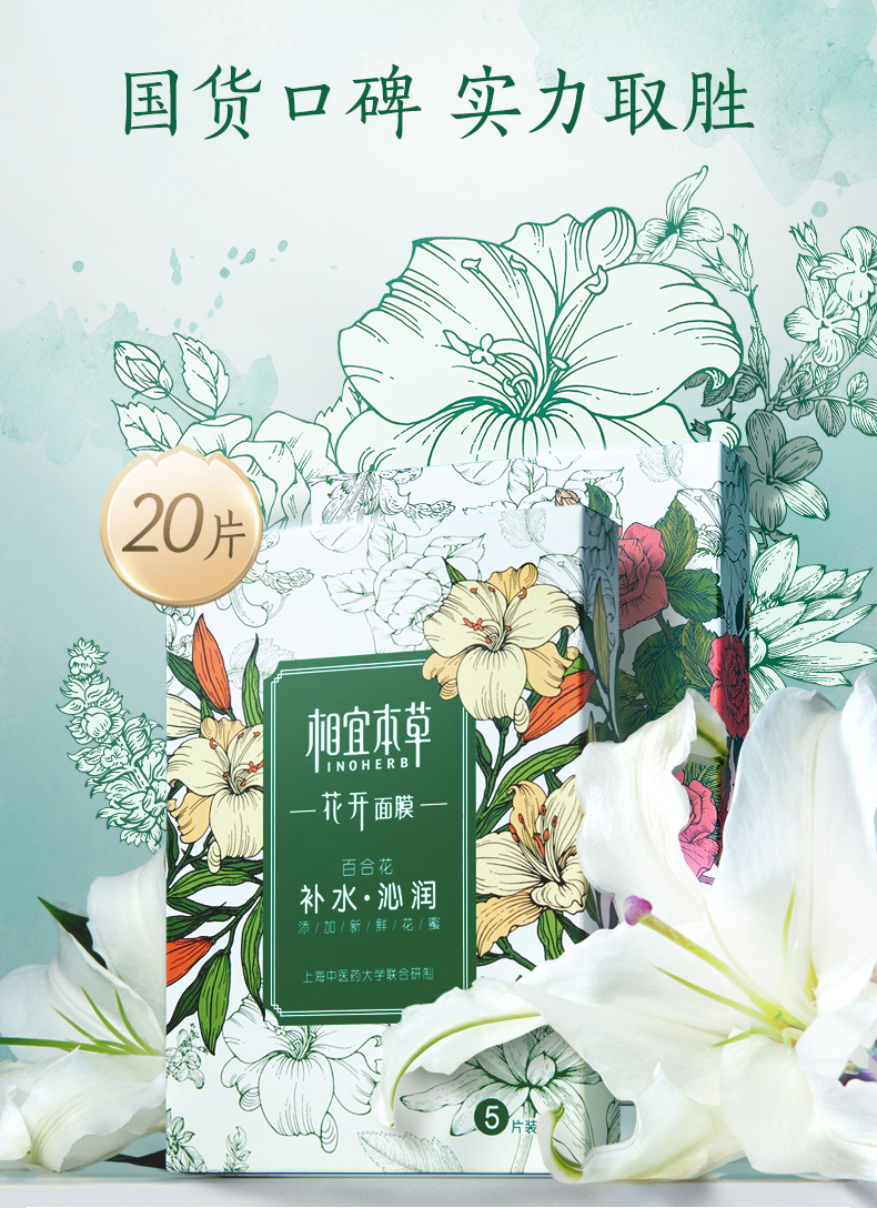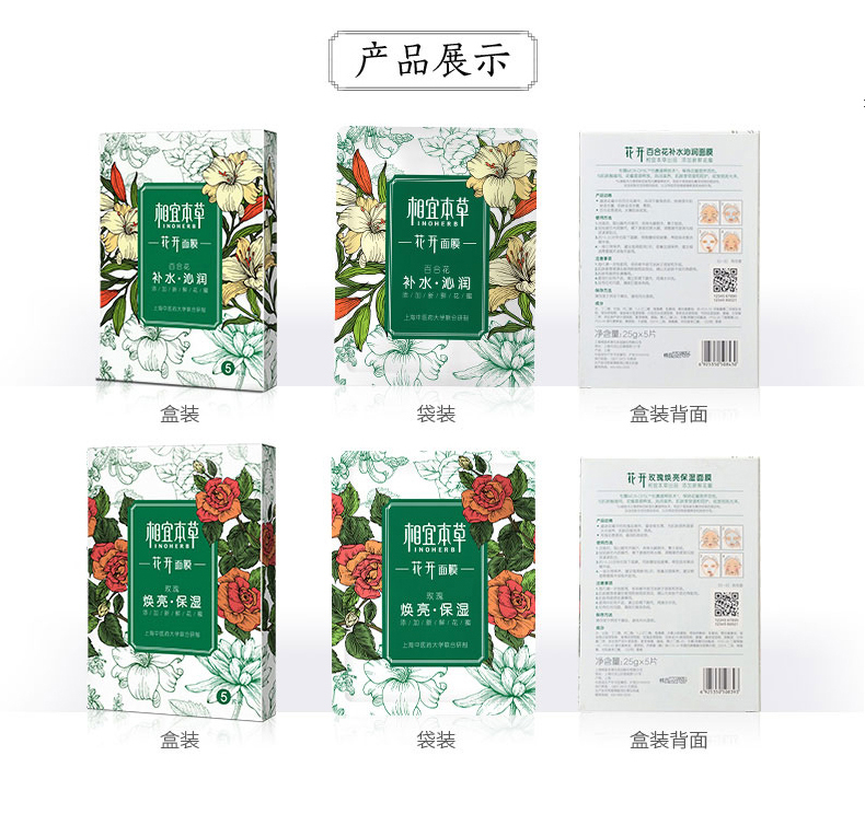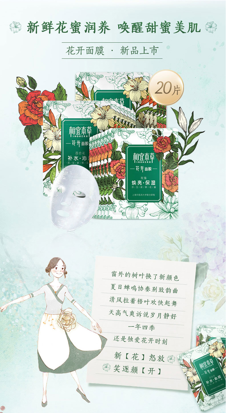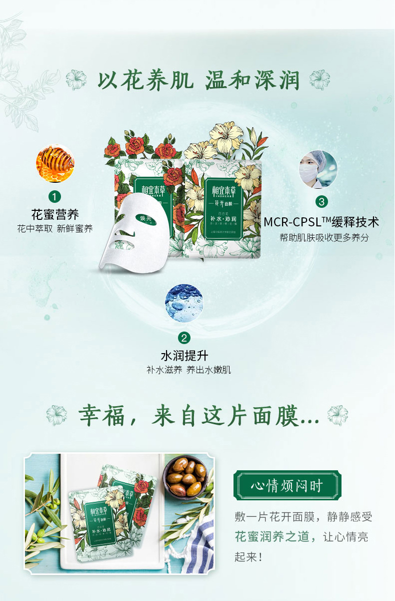 相宜本草花开面膜贴补水保湿提亮修护滋润套装学生男女护肤品正品