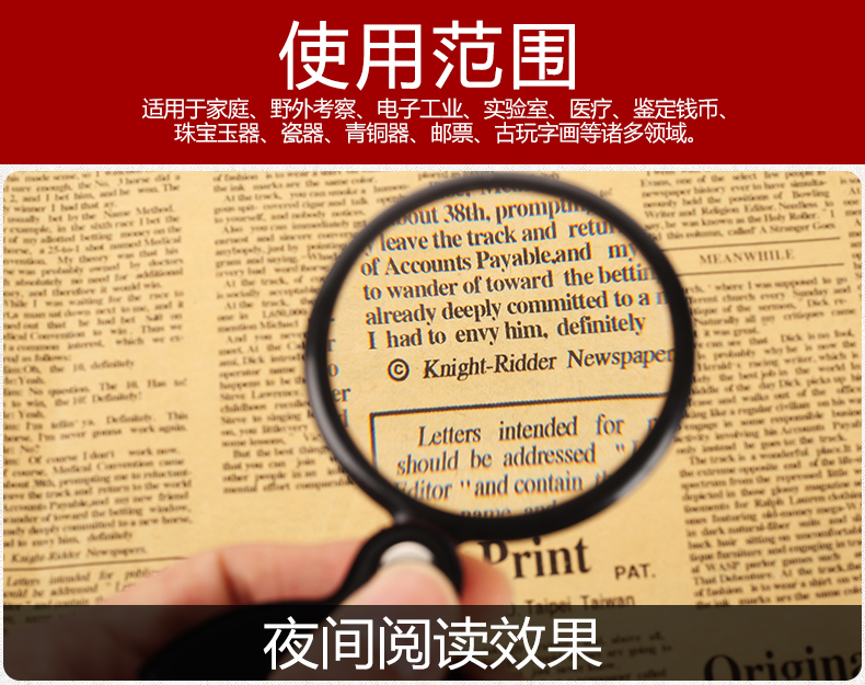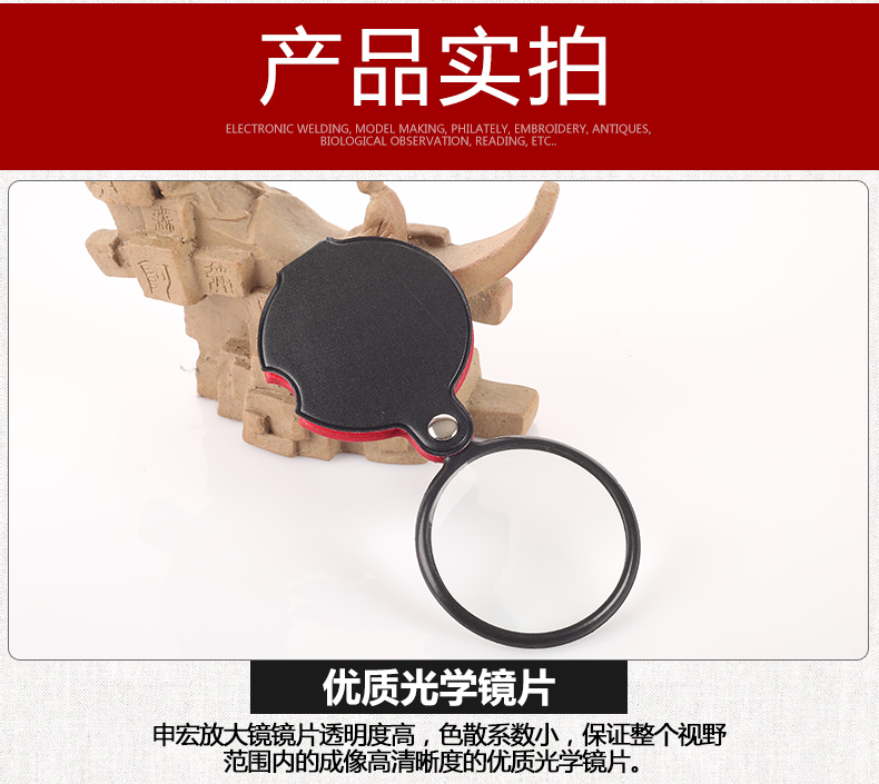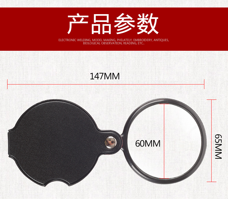 折叠式老人阅读看报放大镜,手感轻巧,方便携带,低调奢华,框架和手柄光泽靓丽,镜片抛光不会有毛边掉岔,送长辈一份特殊的爱~赠运费险