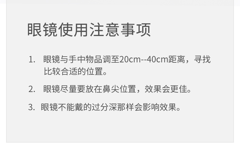【正品保证】高清眼镜型扩大镜3/20/30倍,让您看东西更大更清晰,护眼,轻便,舒适,老人家看手机看书看报就没有烦恼了,关心父母从眼前开始。【赠运费险】