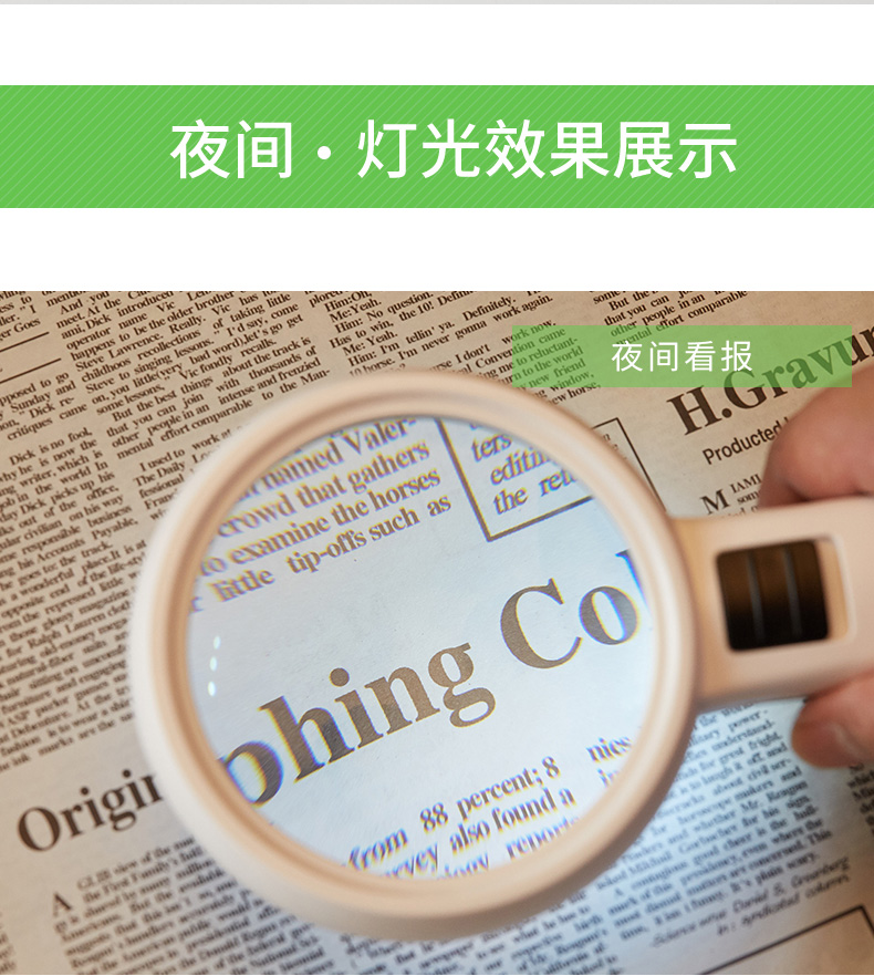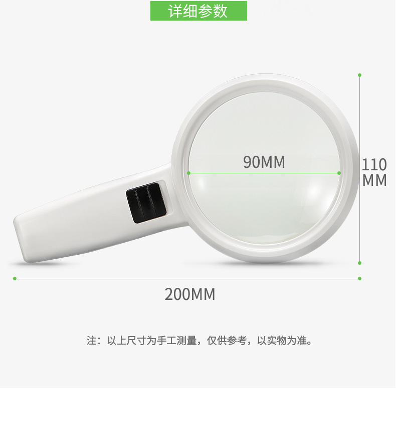 申宏放大镜30高倍儿童学生用老人阅读带LED灯10高倍放大镜100MM手持式光学高清20鉴定维修老年扩大镜1000便携