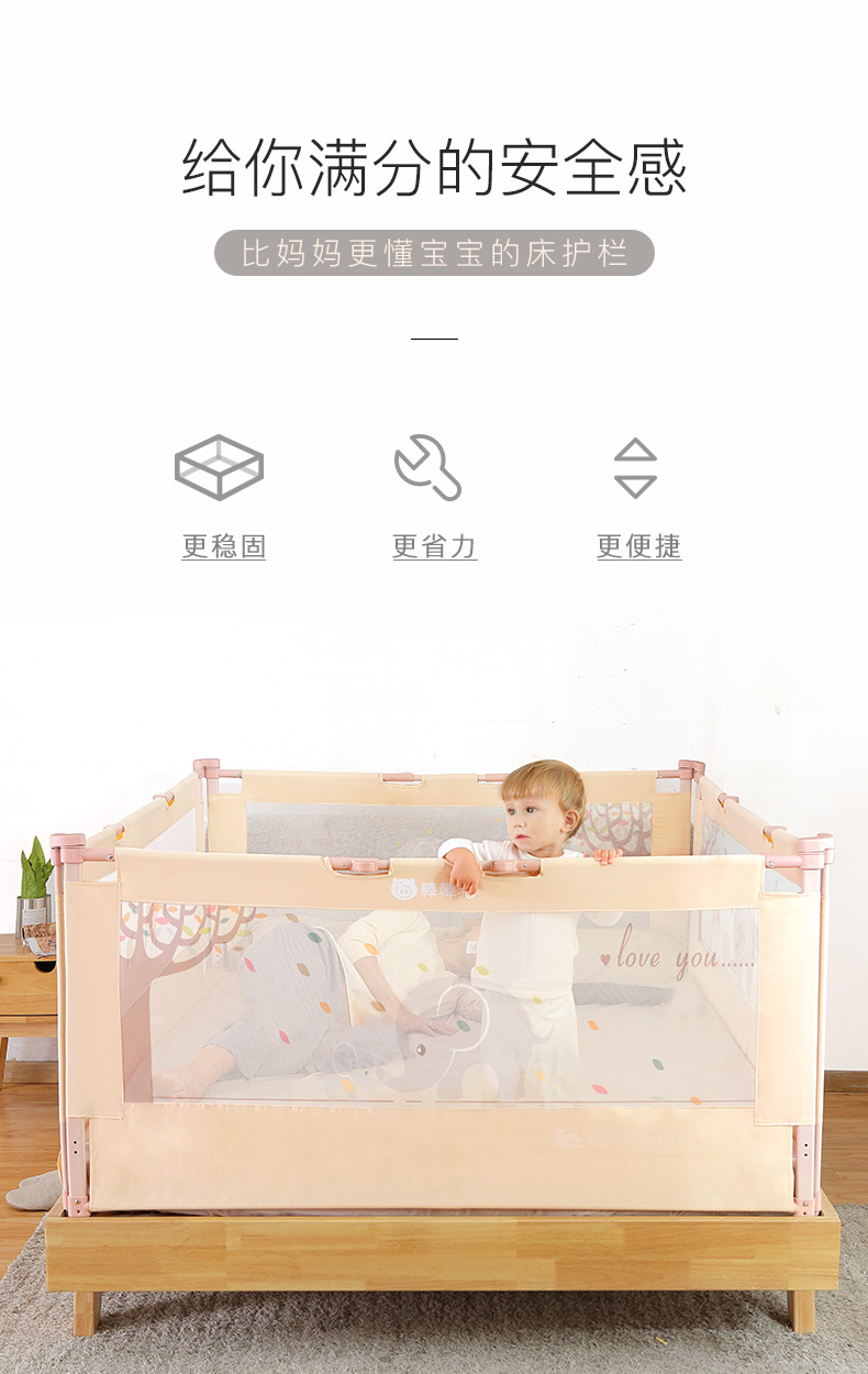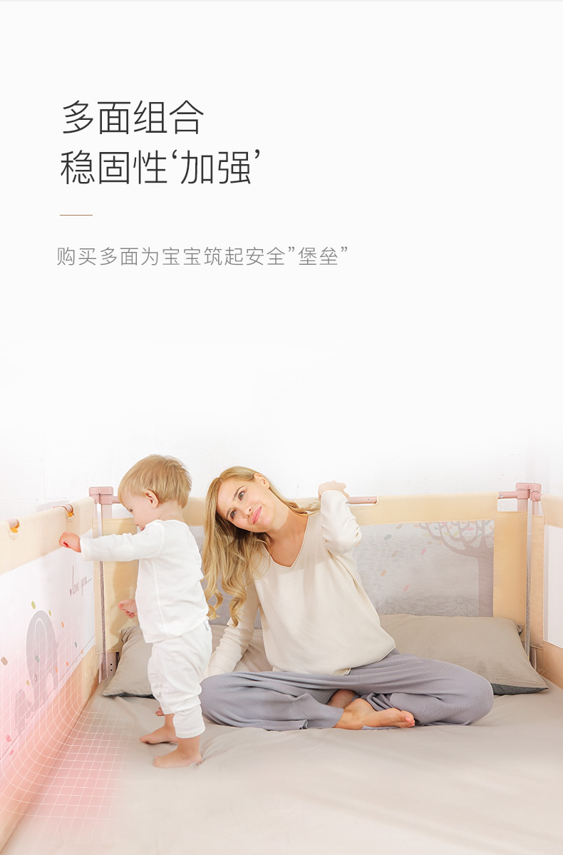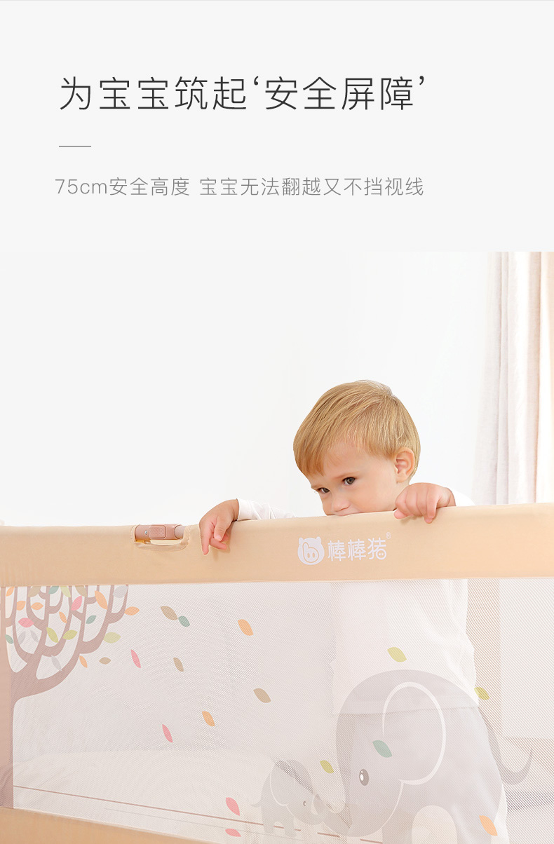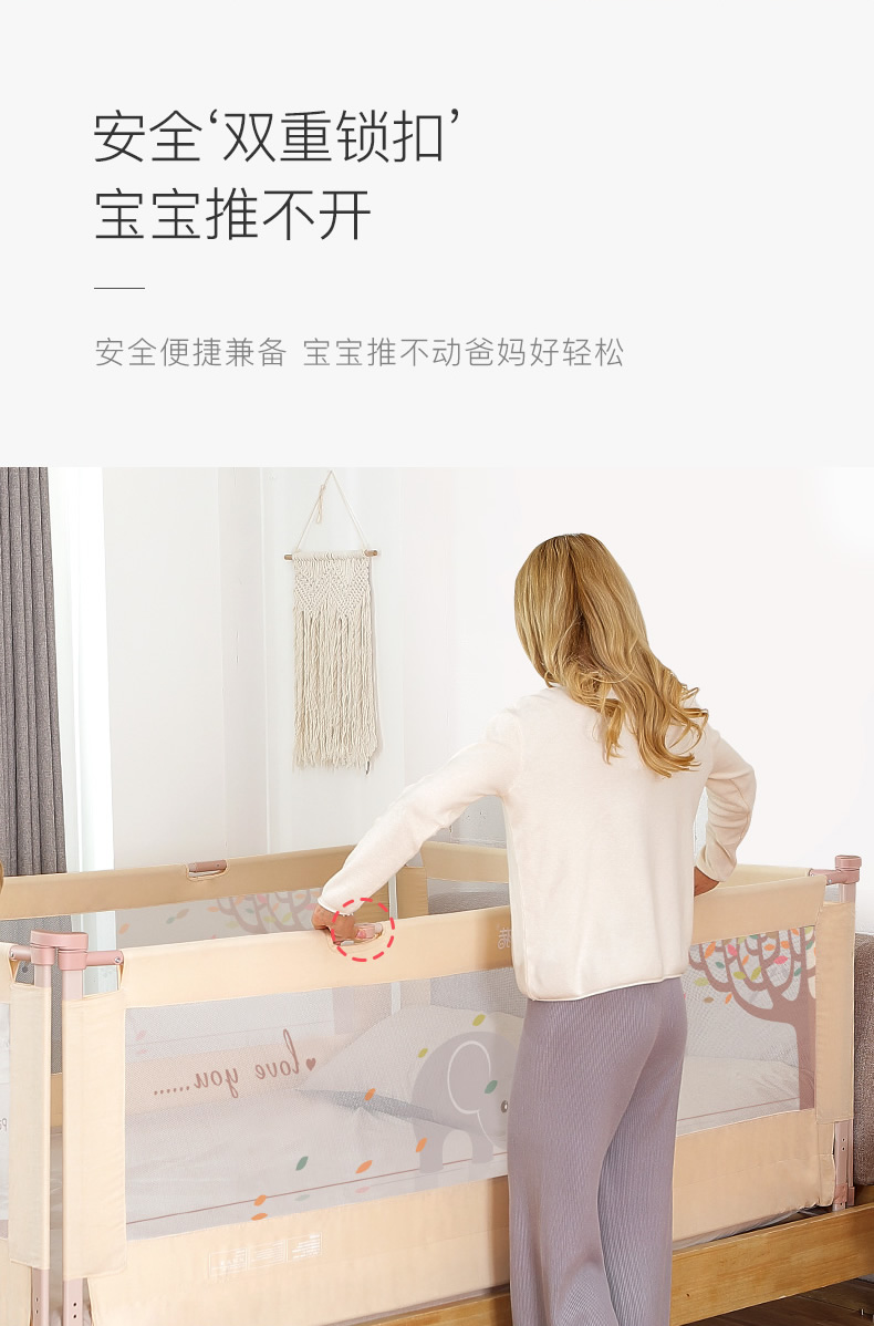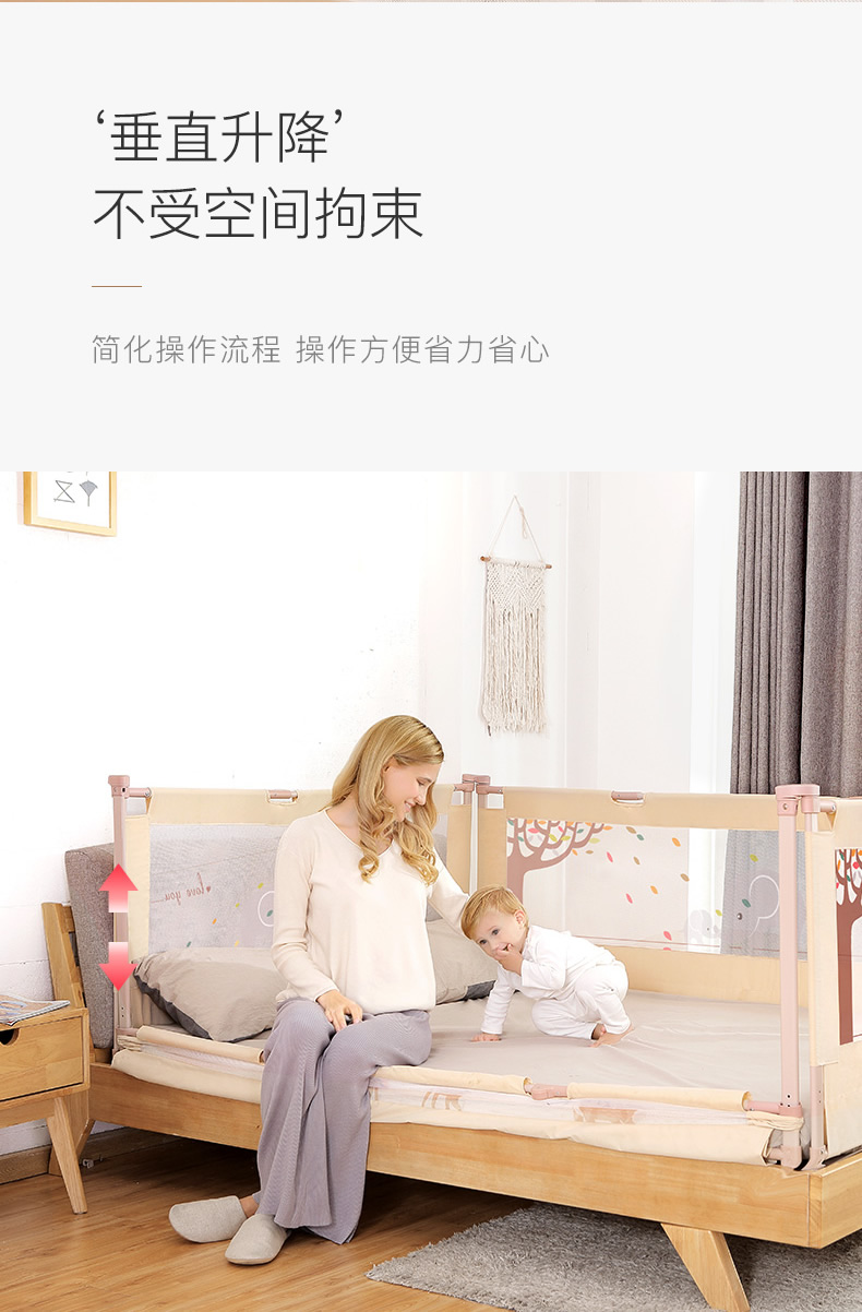 宝宝升降防摔边挡板通用1.5-2米大床围栏,垂直升降节省空间!一人带娃,无需看管,双层防误按钮,实心骨架不摇晃,环保材质无异味。智能三档防夹床,再也不用担心宝宝睡觉不老实~