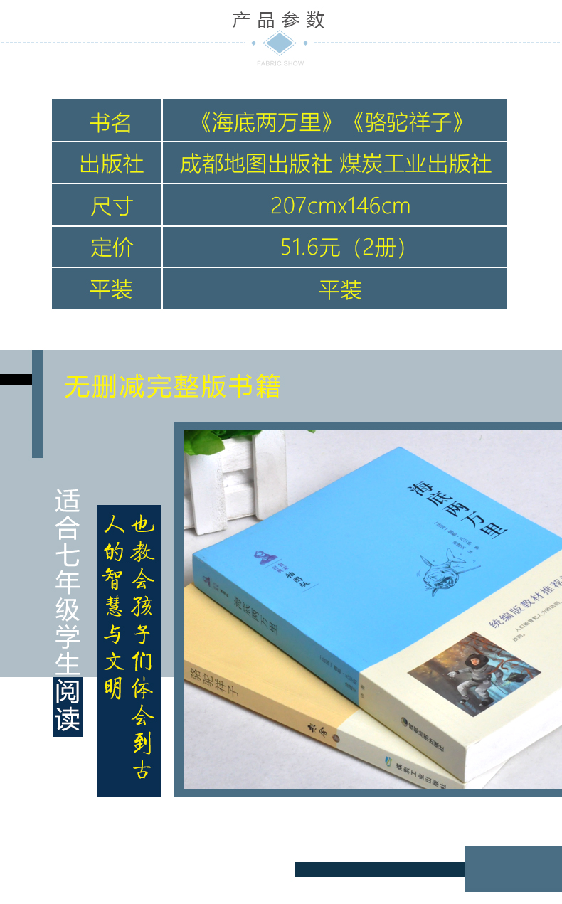 骆驼祥子和海底两万里套装2本 初中生必读的原著人民教育出版社人教版包邮正版老舍 七年级下册 初一小学生课外阅读名著书籍中学生