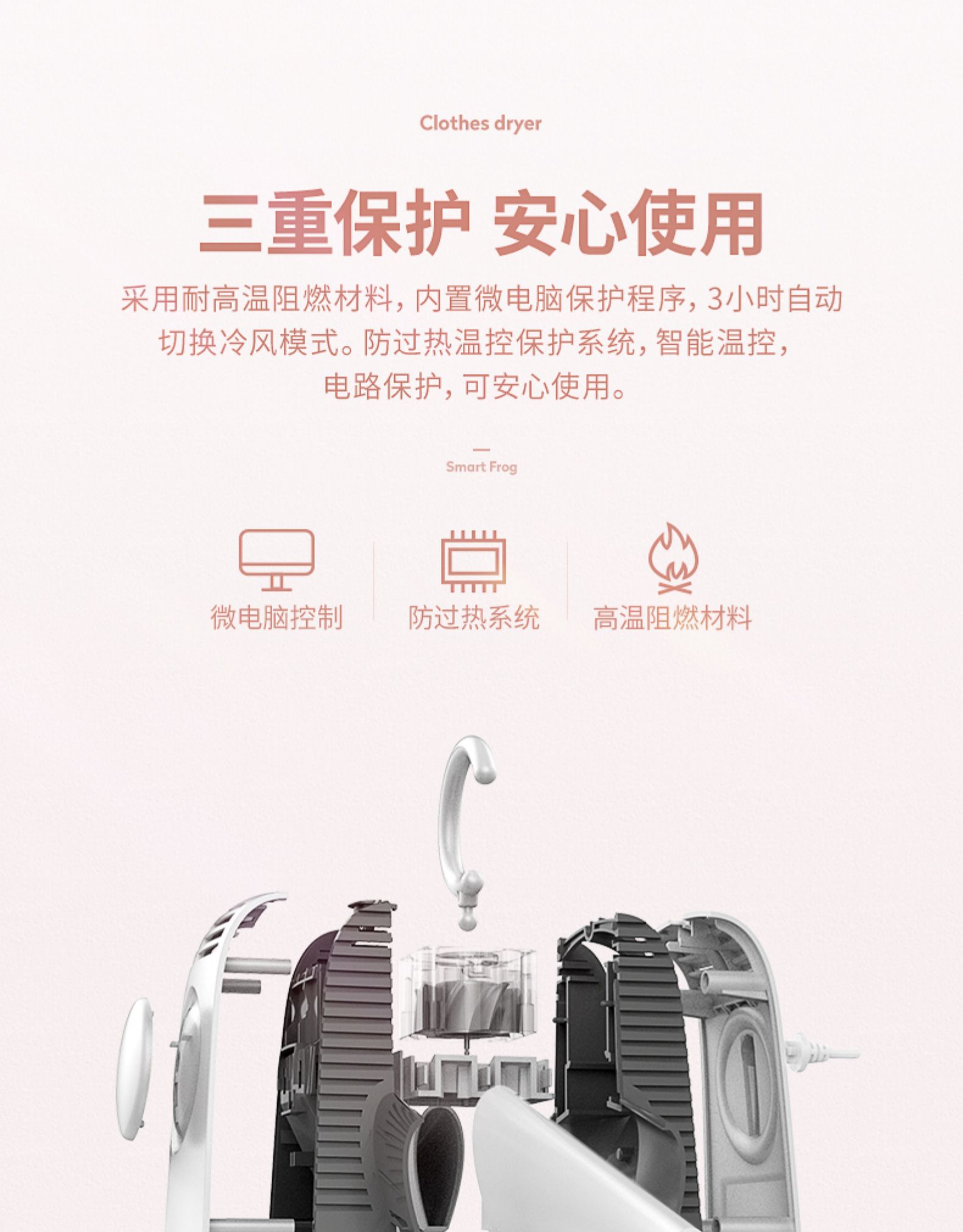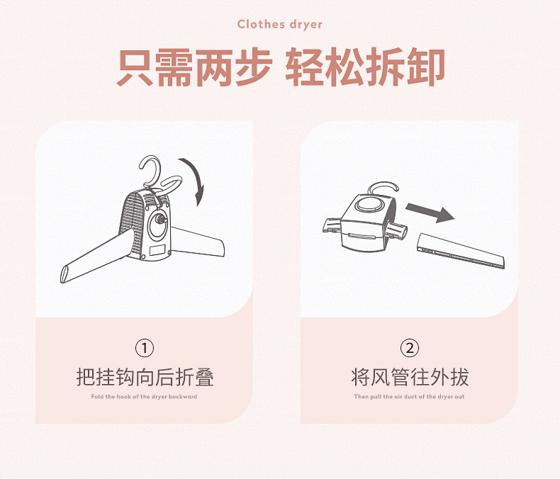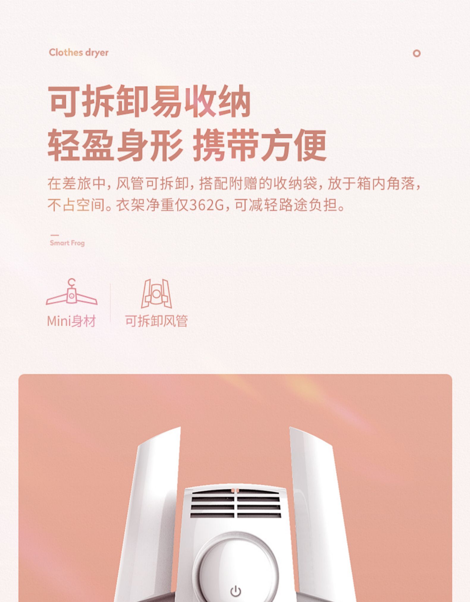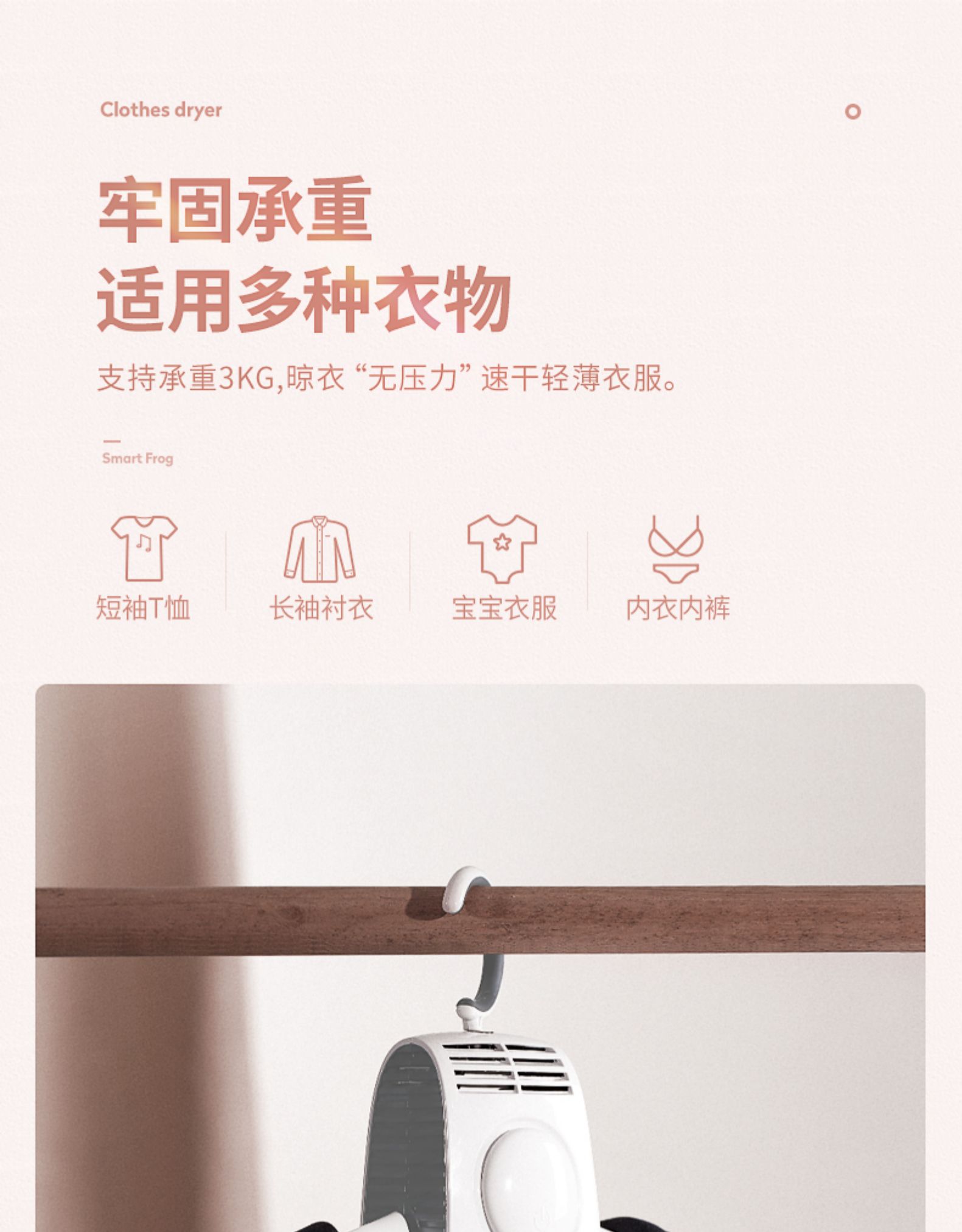 冷热双风,1H快速干衣,两步组装,一秒拆卸,5kg大承重,轻松驾驭各种衣物,梅雨季节,穿衣不再苦恼