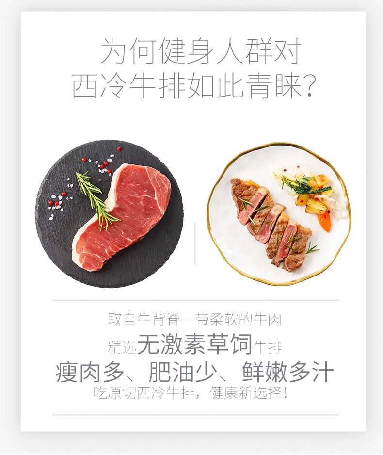 利泽乌拉圭西冷原切牛排牛扒厚肉新鲜进口1kg草饲非腌制6-8片装