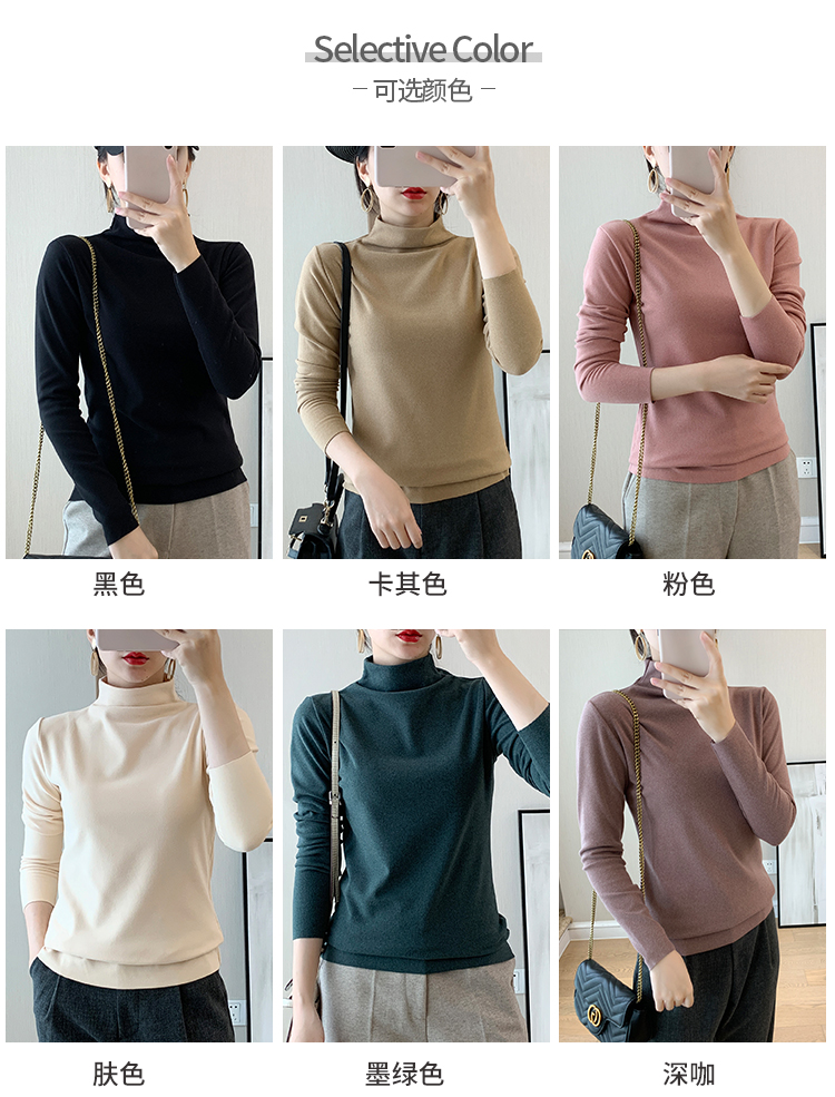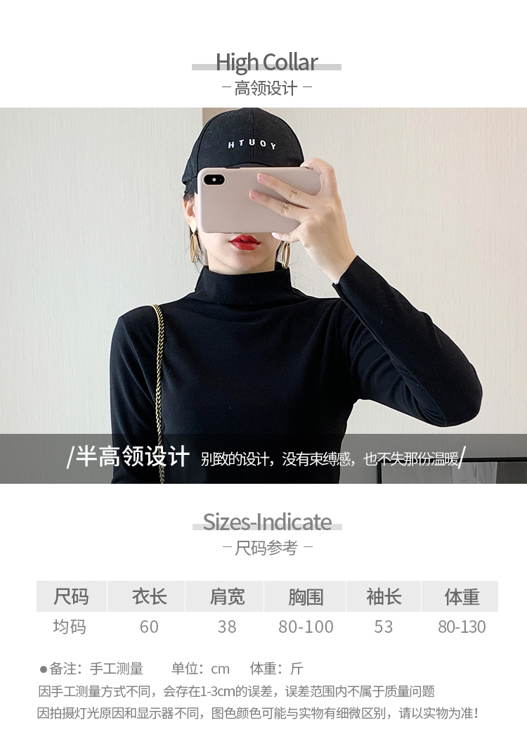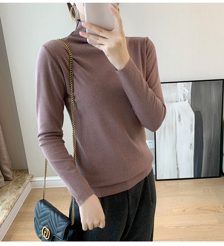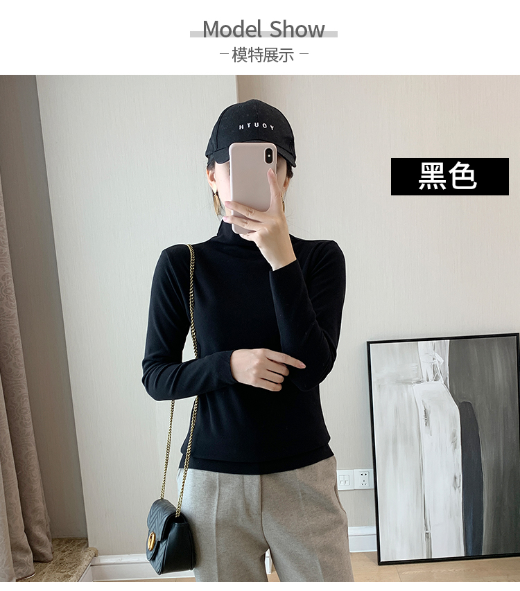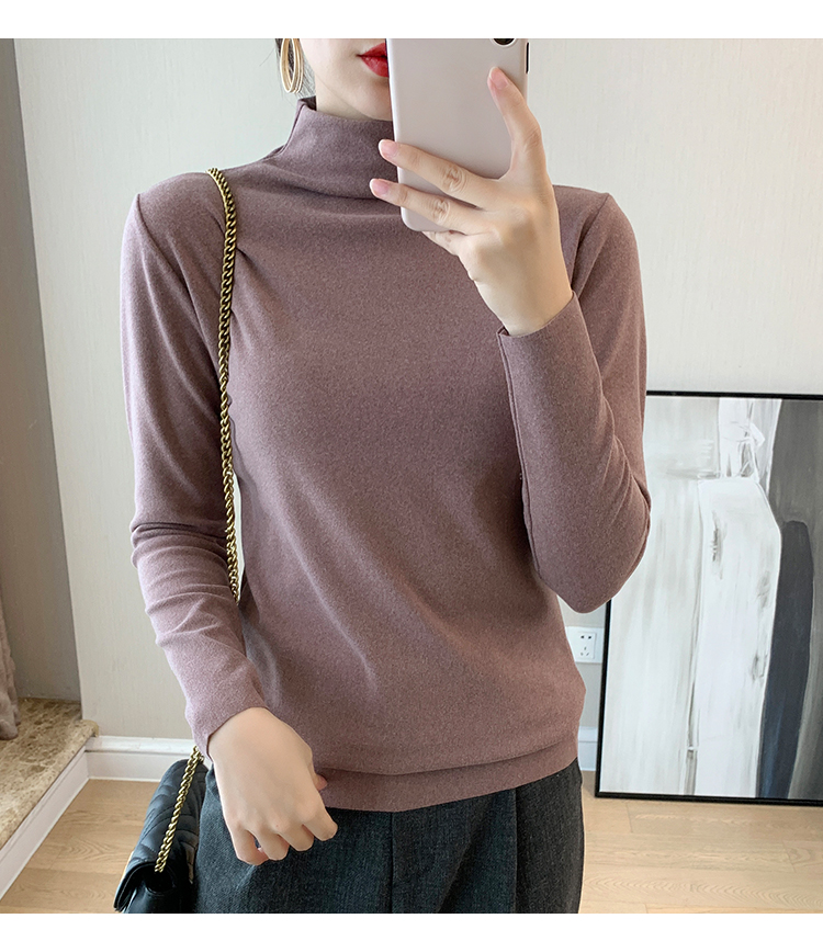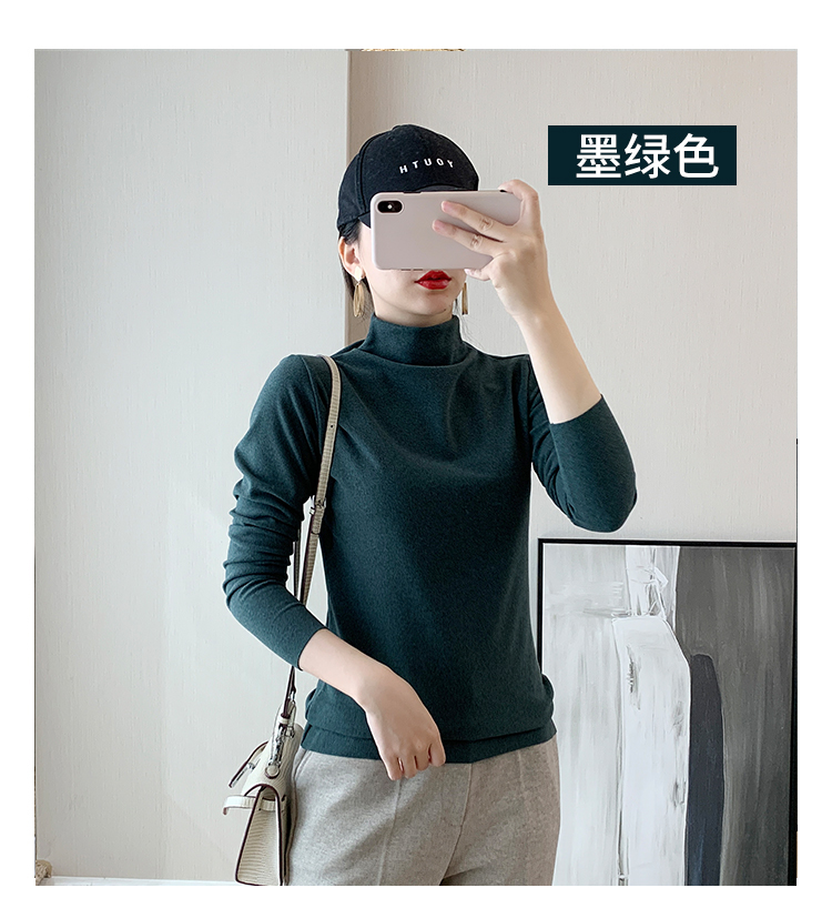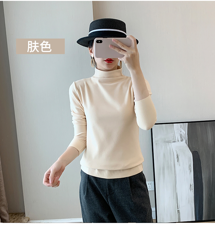 秋冬款德绒半高领打底衫女内搭加绒长袖t恤双面磨绒发热保暖上衣