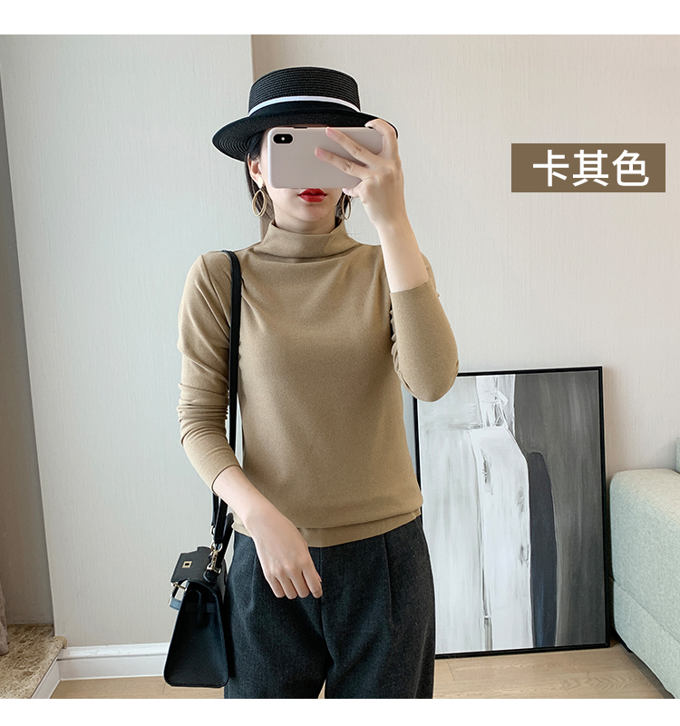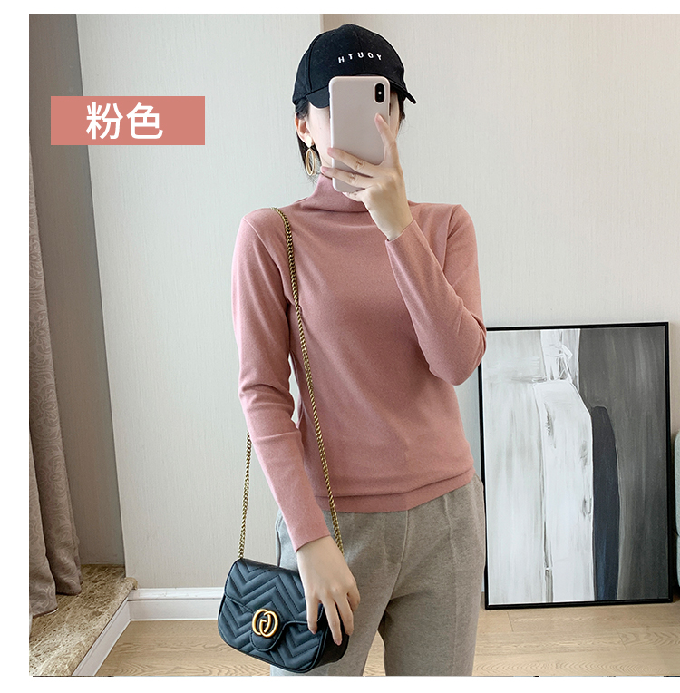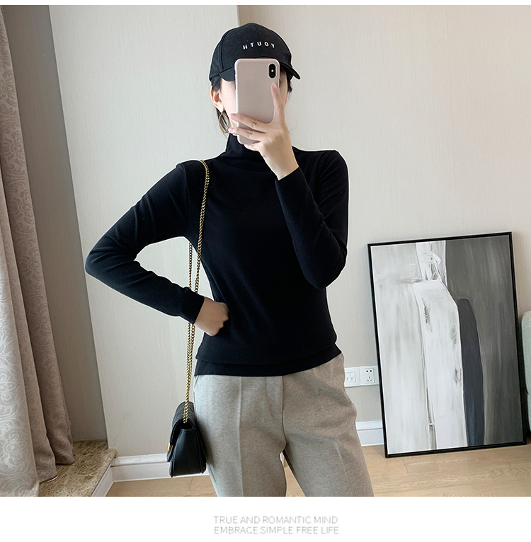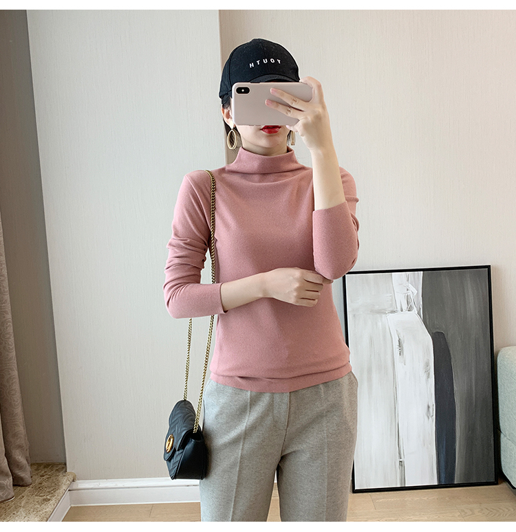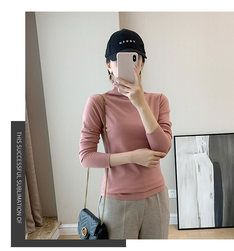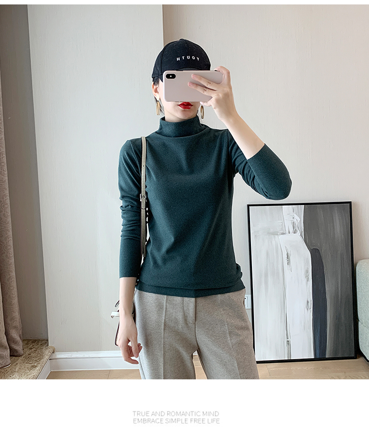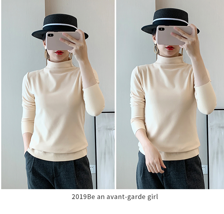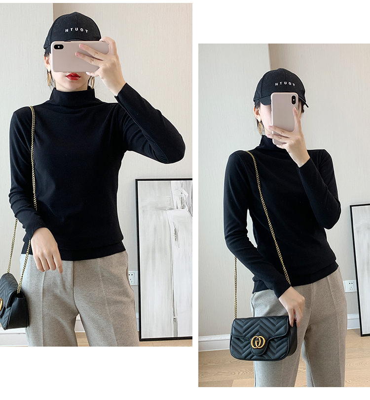 秋冬款德绒半高领打底衫女内搭加绒长袖t恤双面磨绒发热保暖上衣