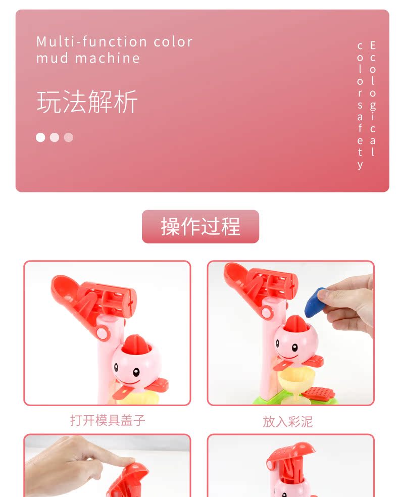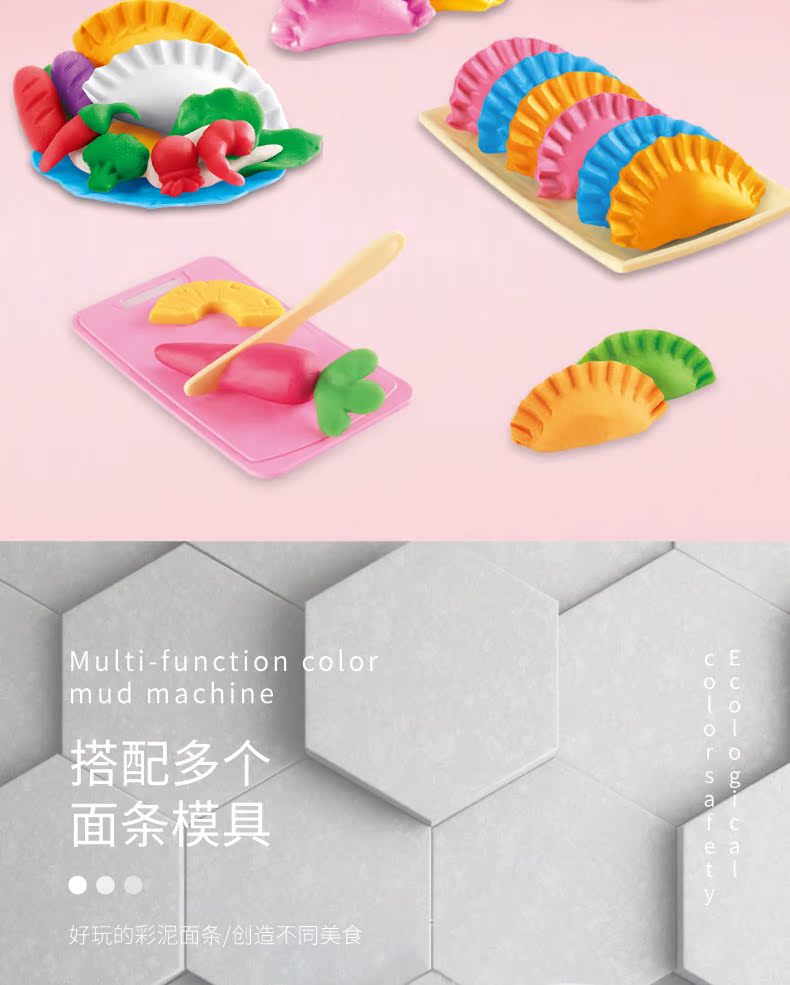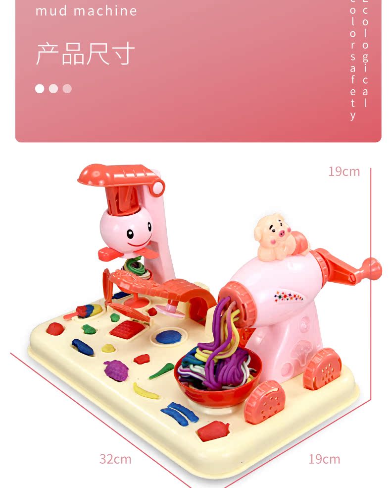安全无毒,面粉不怕误食,让宝宝任意搭配,创意玩法,款式多样,大机身大容量,挤出更长面条,提高宝宝的动手能力,你的孩子也可以是个艺术家!