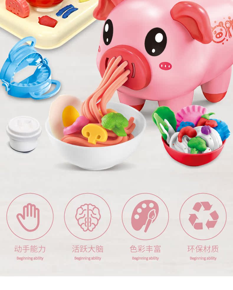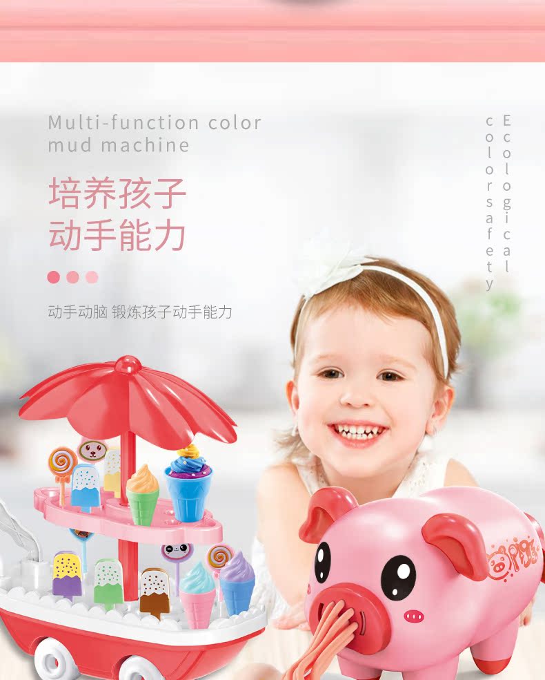 小猪彩泥面条机全套橡皮泥粘土无毒工具套装儿童做冰淇淋女孩模具