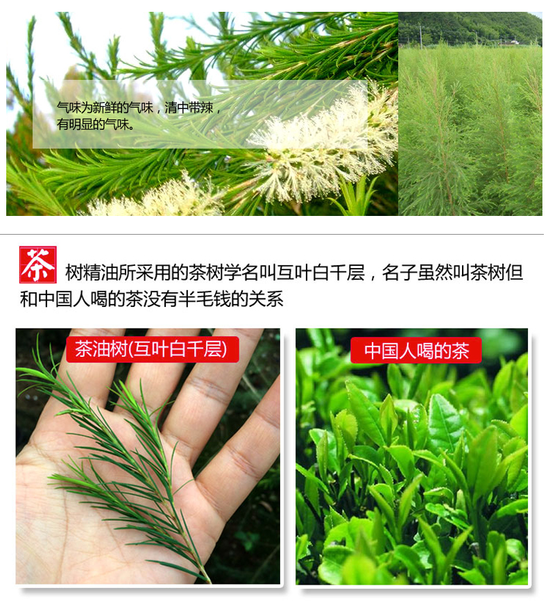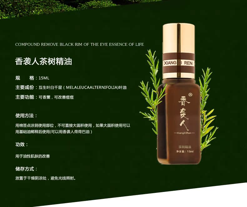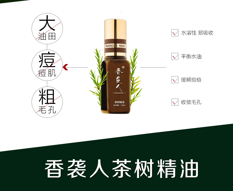 香袭人澳洲进口茶树精油,平衡油脂,缓解痘痘,改善粉刺,细致毛囊,帮助你重拾挣爽平滑肌肤,使用气味为清新气味,清中带辣,青春期备用精油,只做女神拒绝痘痘!