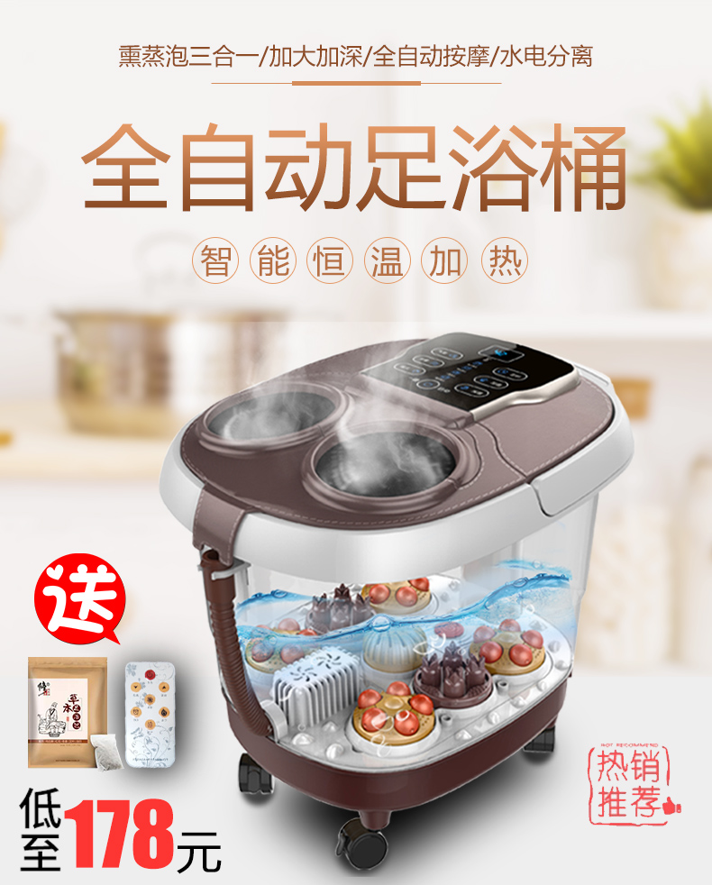 【一款更安全的足浴盆,回馈足浴盆】品质靠谱,享受真人般的按摩待遇!一键启动,智能恒温加热,蒸泡熏三合一,较低滚揉,全方位按摩穴位,没事泡泡脚,健康活到老!【正品保证】