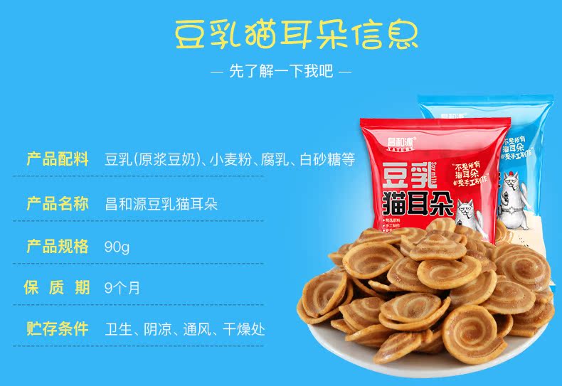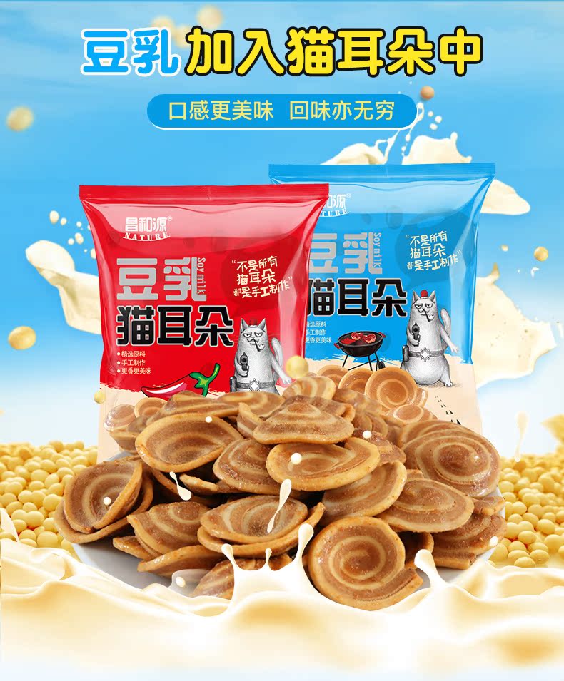 【拍4份发10袋】昌和源豆乳猫耳朵零食薄脆整箱900g休闲小食品2袋