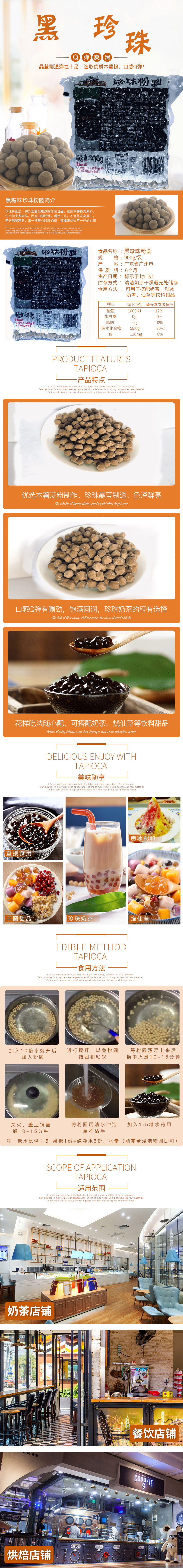 2包减2元奶茶专用珍珠粉圆900克黑珍珠粉圆珍珠奶茶原料配料