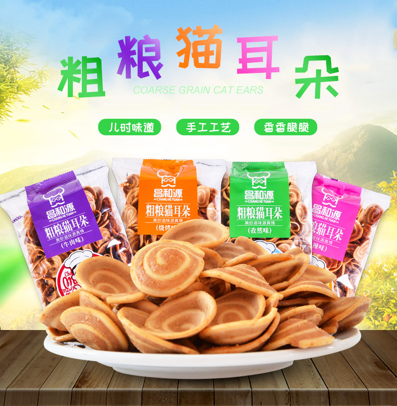 昌和源粗粮猫耳朵,零食怀旧小吃,酥脆不油腻,健康美味,办公室闲时来一袋,舌尖的美味邂逅,好吃停不下来。