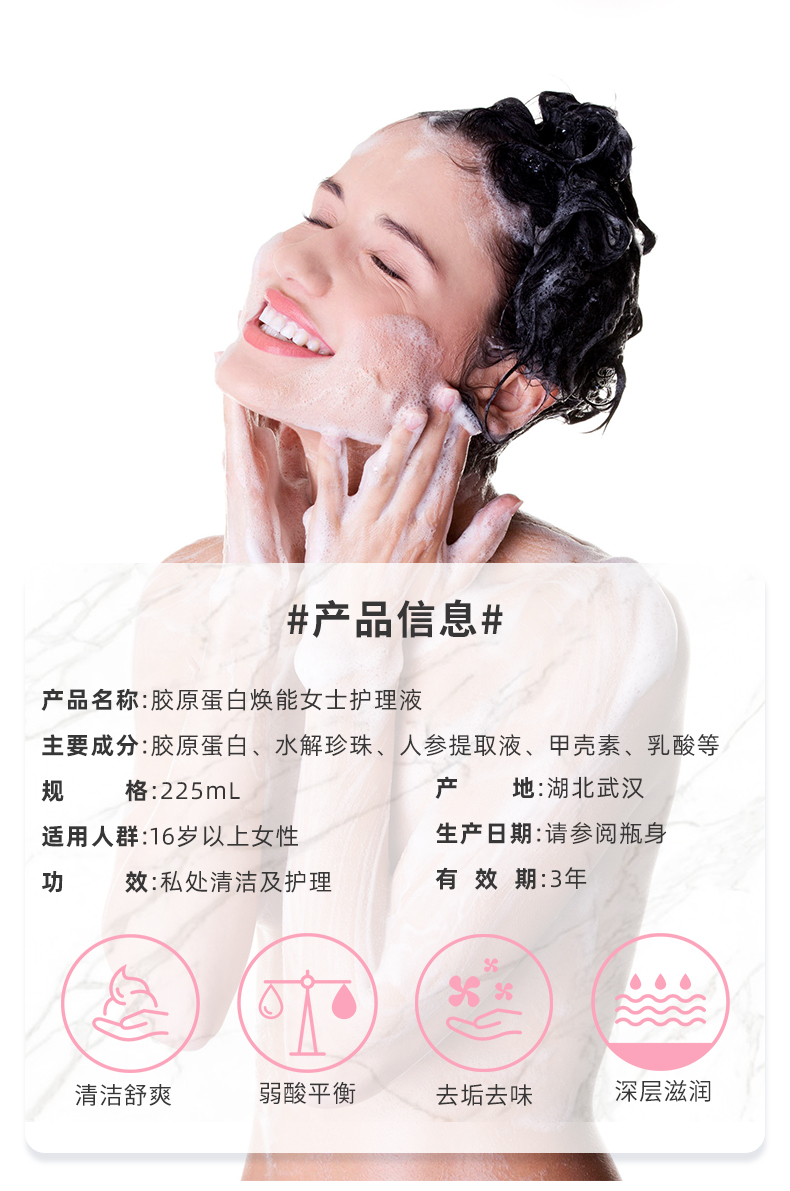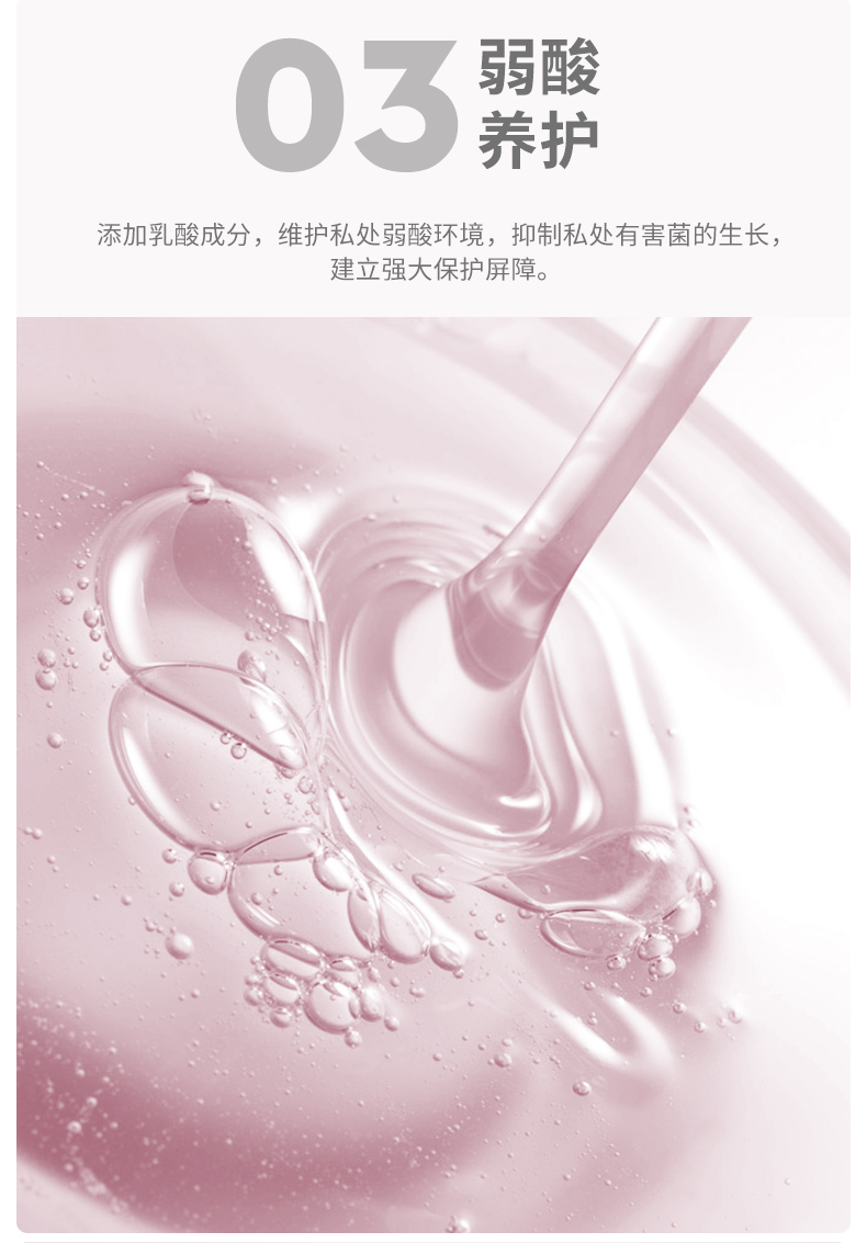 包装升级、配方升级,乳酸基底,清洁、滋润、养护,多效合一。日常使用,养护私处菌群平衡,唤醒私处天然保护力。