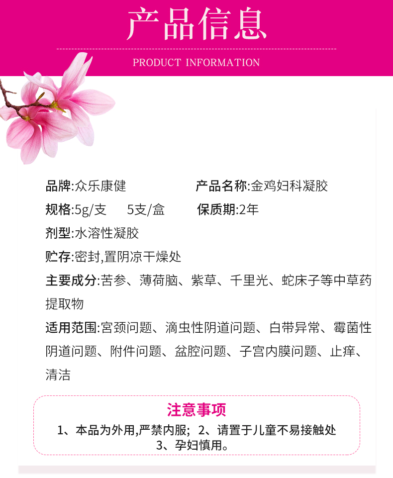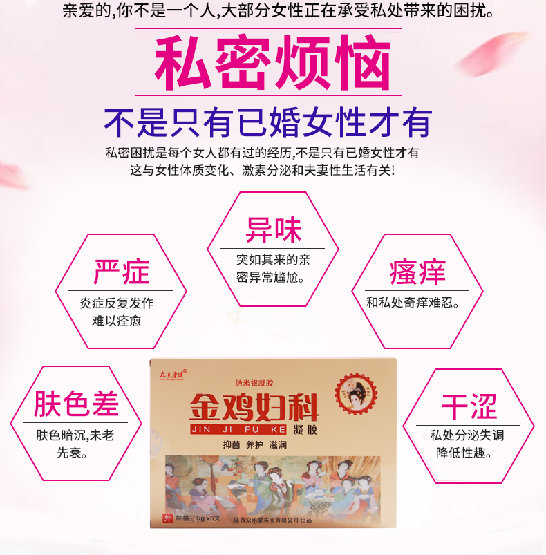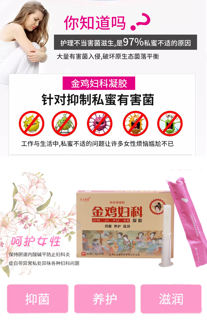金鸡苦参女性妇科凝胶,呵护私处,做无炎女人!植物萃取凝胶,草本抑菌配方,抗菌消炎~解决霉菌、阴道分泌物过多、豆腐渣等问题!让你紧致如初