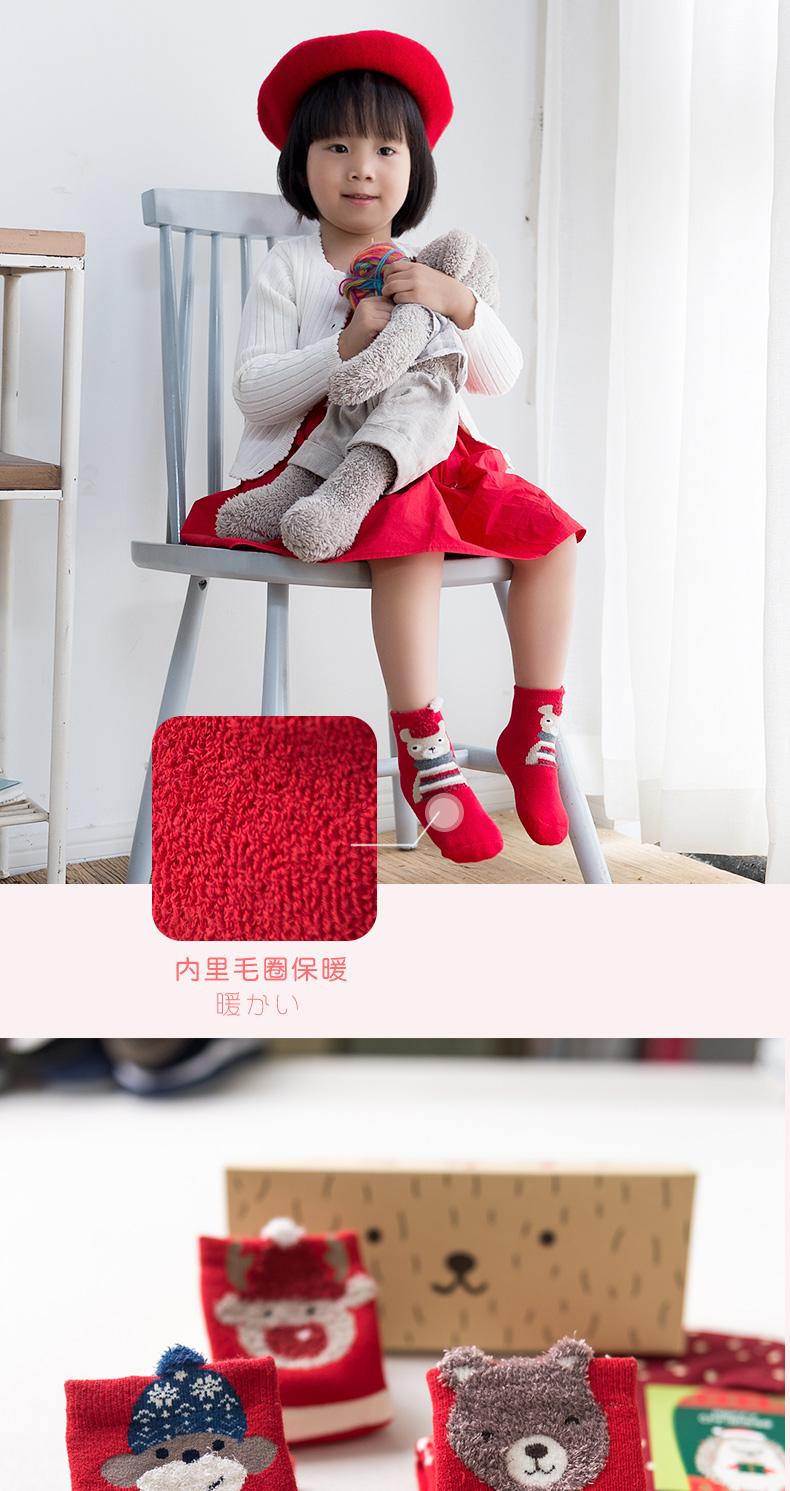 零甲醛棉袜,舒适亲肤,环保印染,不易起球,圣诞加厚毛圈袜,给宝宝一个开心的圣诞!