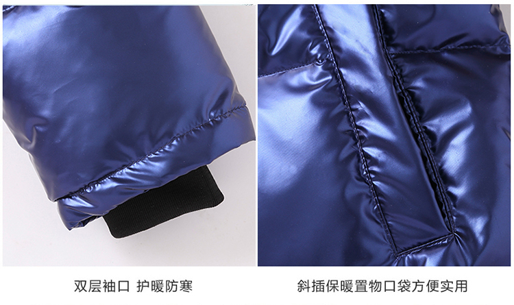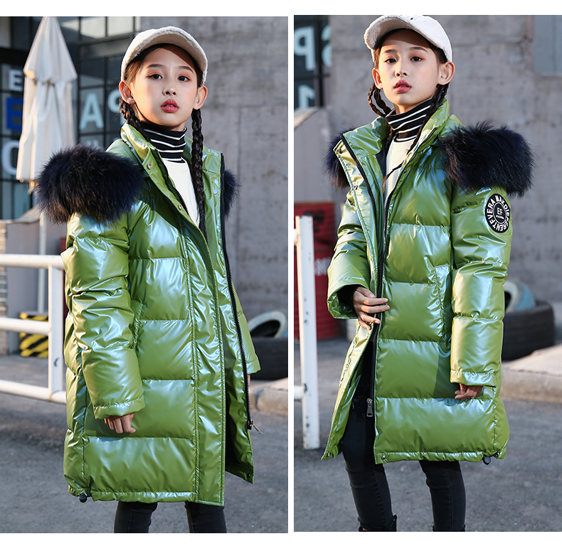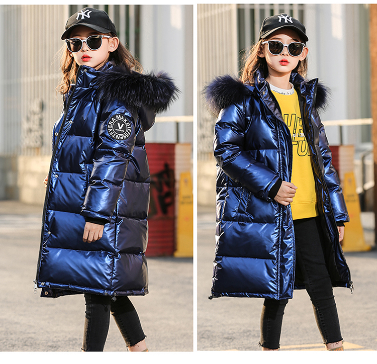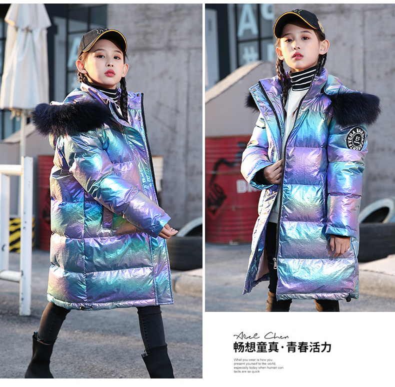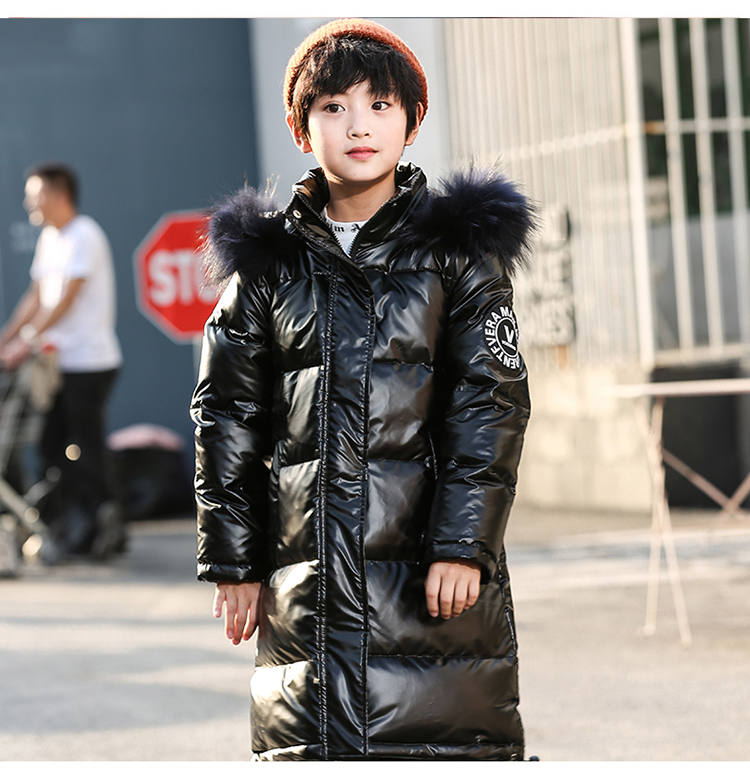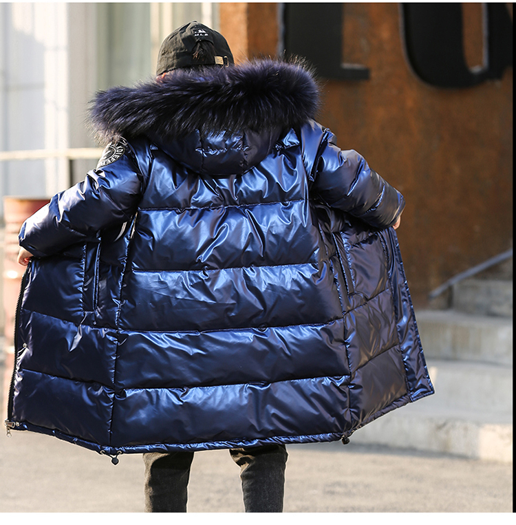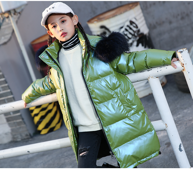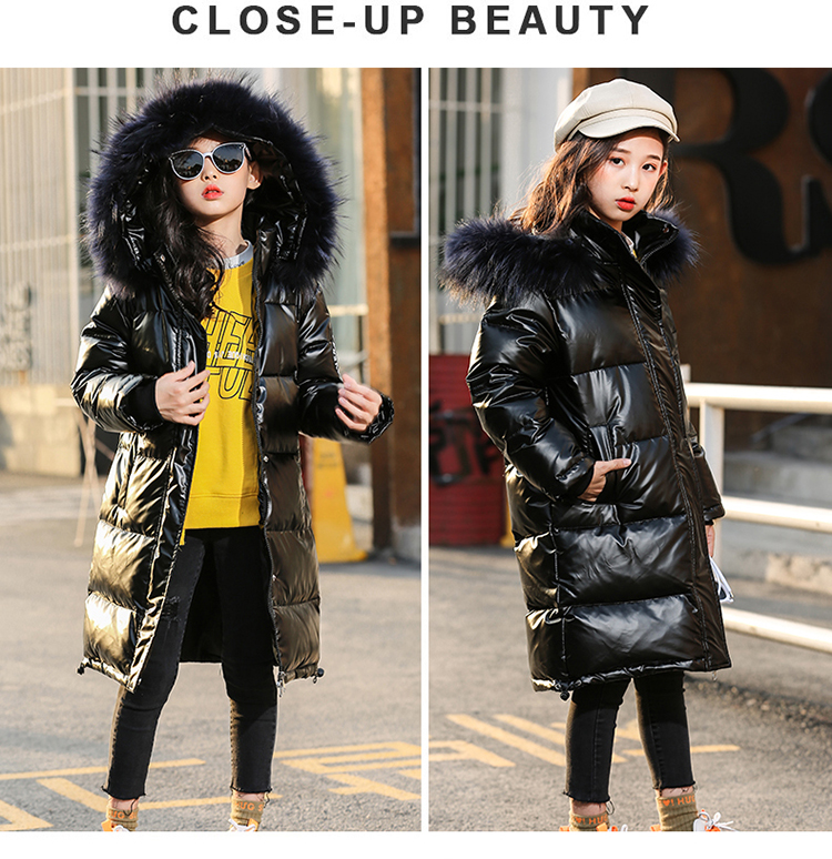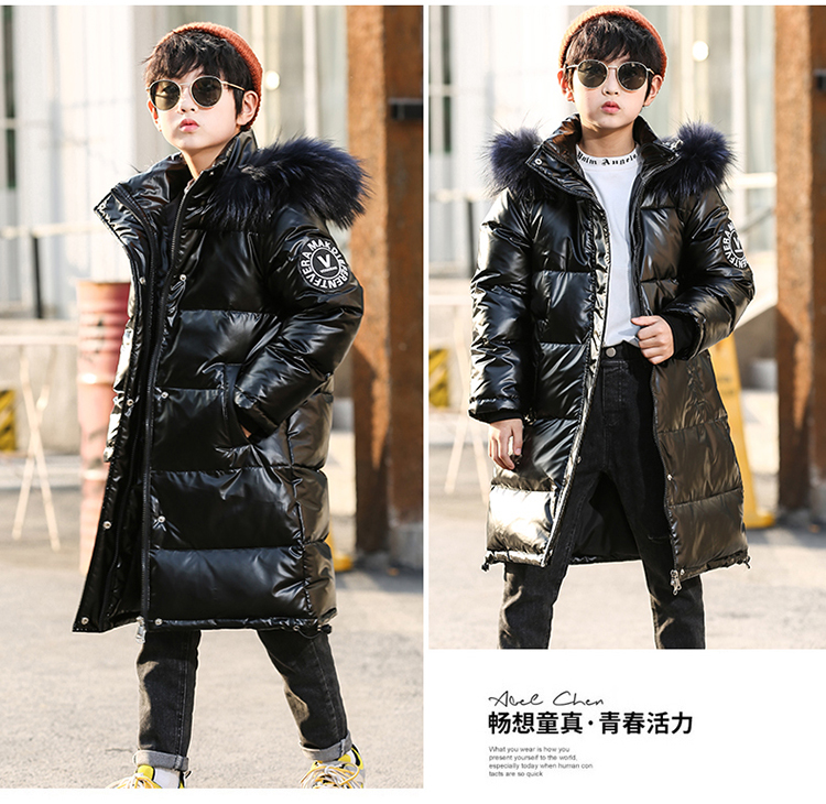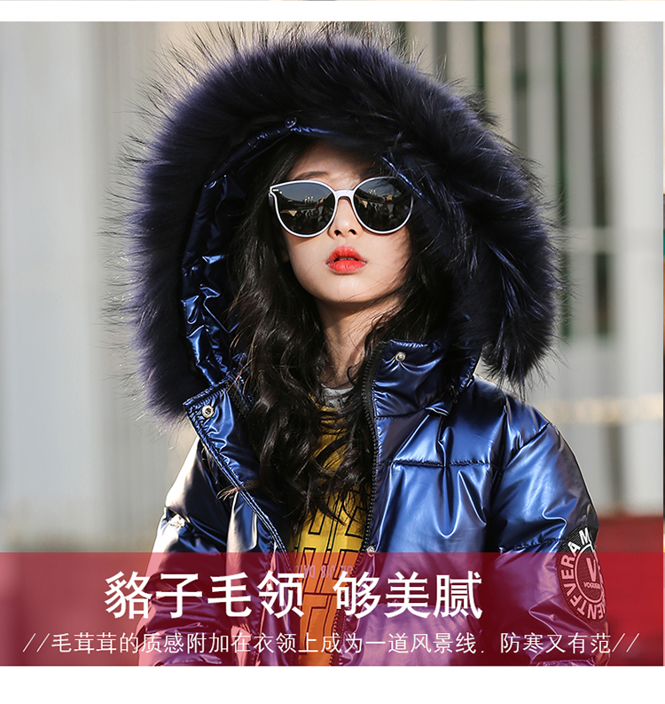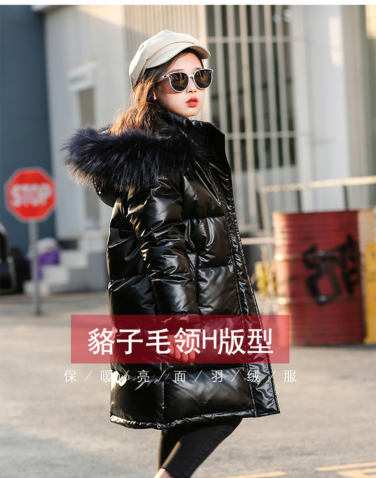 儿童羽绒服亮面连帽大毛领大童冬季韩版女童男童中长款2019新款