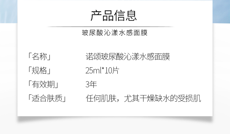 诺颂玻尿酸补水面膜深层保湿提亮肤色收缩毛孔紧致超薄男女士正品