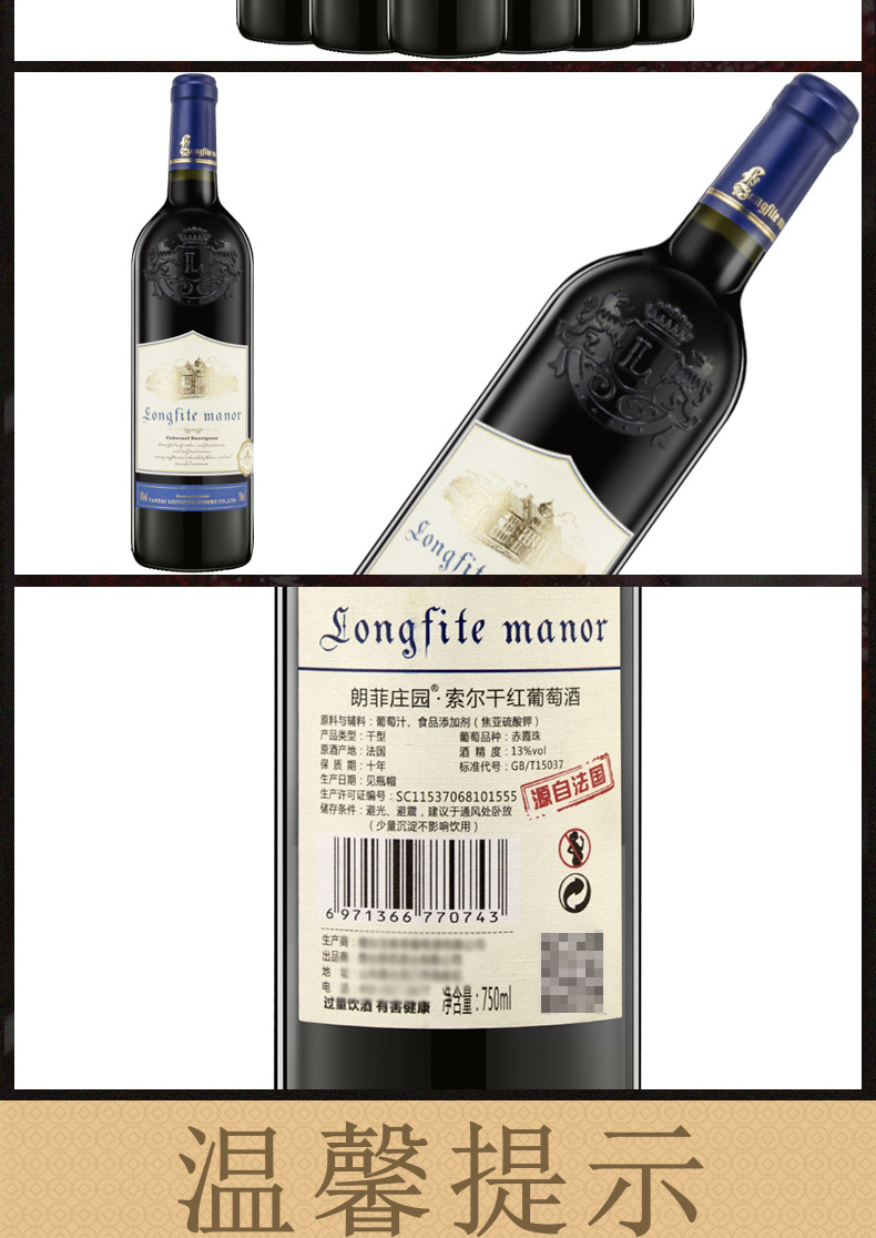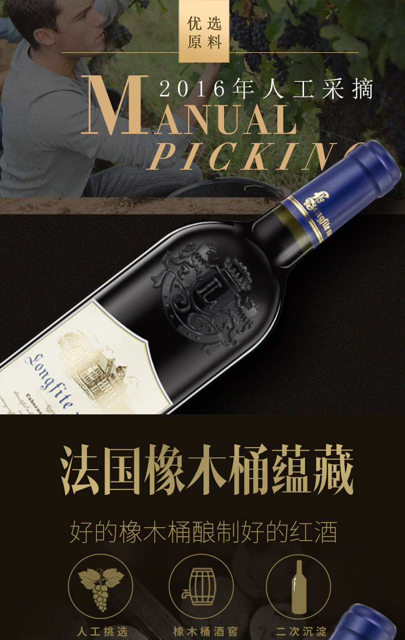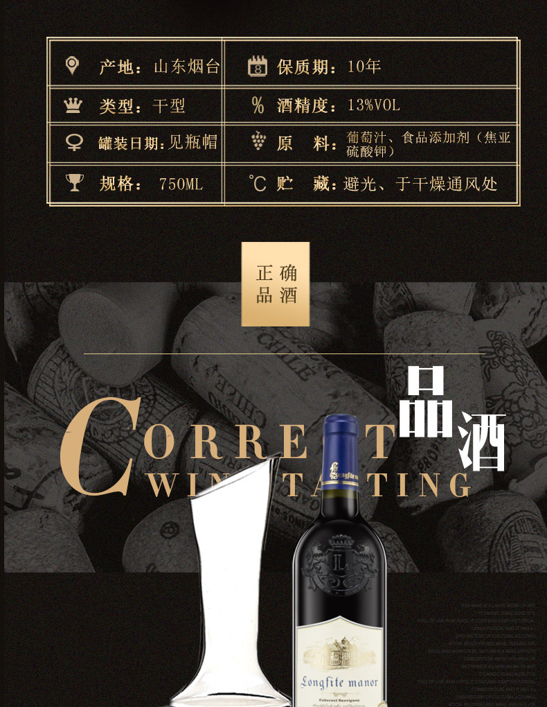 法国进口原酒朗菲庄园赤霞珠干红葡萄酒750mL*2支礼盒装送海马刀
