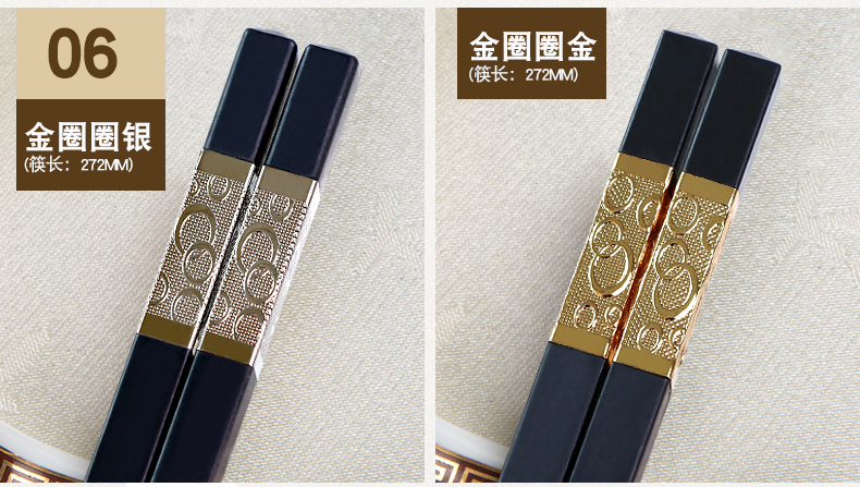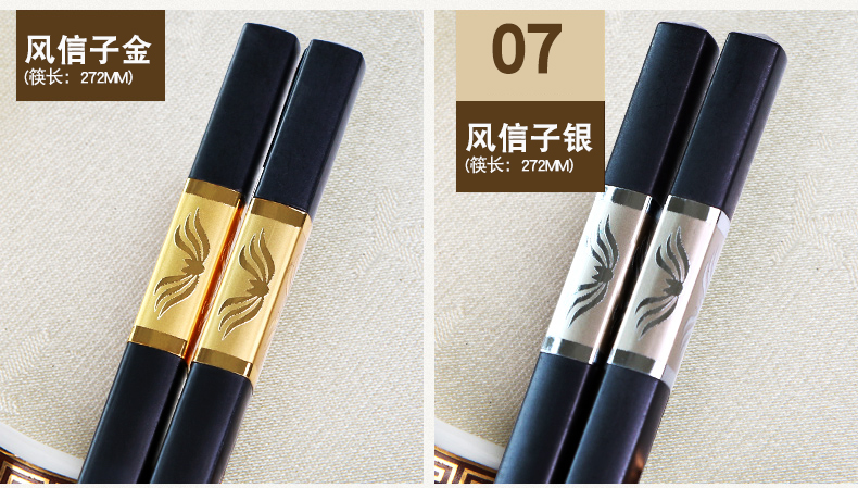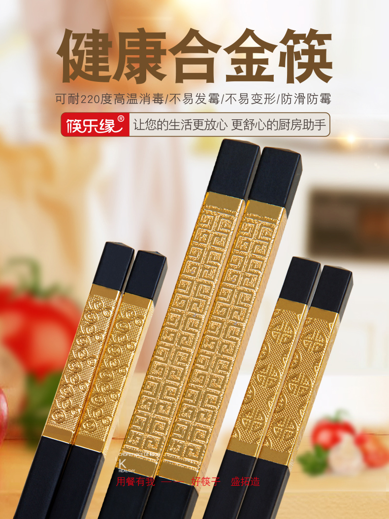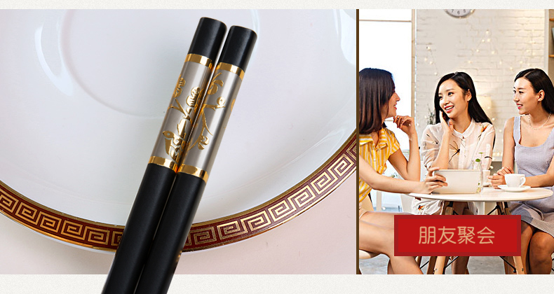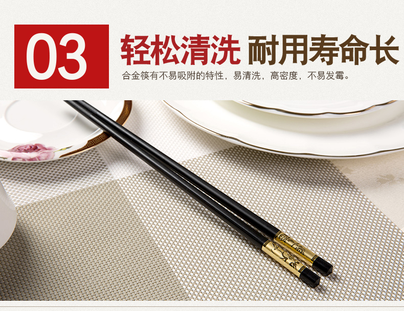 家庭合金筷子家用套装10双 筷子套装 家用 防滑非骨瓷竹实木个性